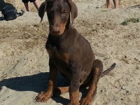 Heute morgen haben wir am See viele Hunde getroffen- kein Wunder, denn es herrscht echt ein Bombenwetter und jeder versucht es zu genießen. Mir hat heute vor allem Anton angetan- ein Dobermann Welpe 10 Wochen alt. Der war soooooo süß! Deshalb ist er heute bei uns der Fotoheld des Tages! So ist das mit Goldie Züchter auf Welpenentzug: die gehen fremd schmusen!