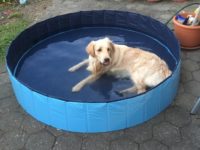 Jack – einer unseren Jüngsten aus dem J Wurf hat gerade besonders gut. Nicht nur, dass er mit Papa und Onkel oft zum Baden fahren dürfte… …jetzt hat er noch einen eigenen Swimmingpool bekommen – und das, weil wegen der Hitze gerade viele Seeen nacheinander wegen Algen und bakterieller Belastung gesperrt werden. Na, dann wünschen wir viel Spaß mit dem neuen Schwimmbecken. Und an Simone und Stefan herzlichste Grüsse! !!!