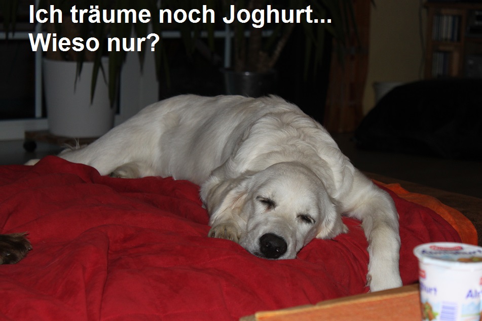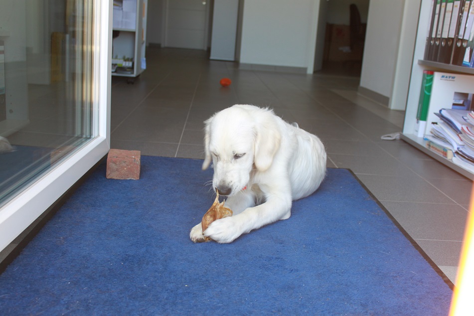 Ansonten macht sich unsere kleine Maus in den letzten Wochen wirklich ganz toll !!! Nach einem etwas holprigen Start scheint sie jetzt bei uns angekommen zu sein. Wir lieben sie abgöttisch und würden sie um nichts in der Welt mehr hergeben. Auch wenn der retrievertypische „will to please“ bei ihr eher ein „will to eat“ zu sein scheint….
