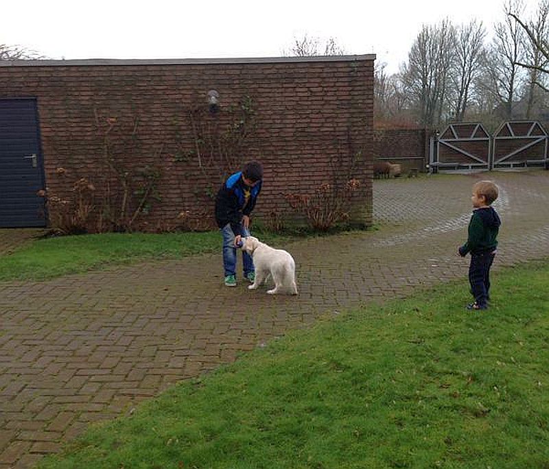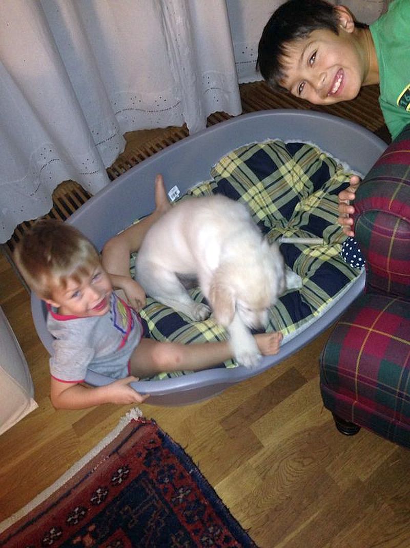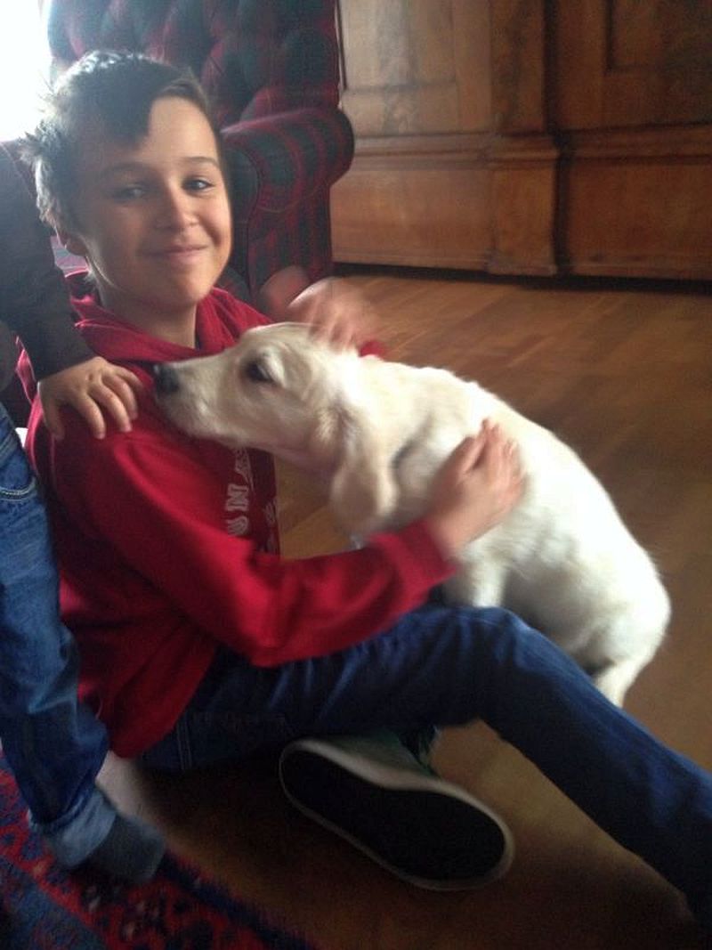 „Liebe Anna-Maria, ein kleines Update über Fendi. Er hat sich ganz super und total unproblematisch eingelebt. Nach einigen Anfangsschwierigkeiten beim Autofahren, haben wir Dank Deiner Hilfe auch das gelöst mittels Box im Kofferaum :0)! Heute waren wir nach der Schule noch in Timmendorf ein wenig spazieren und Kuchen essen-das Wetter war toll und Fendi hat klasse mitgemacht und viele Spielgefährten getroffen. Max liebt es mit ihm in seinem Korb zu sitzen- ganz süß die Zwei! Fendi ist wirklich super und lernt richtig schnell!“