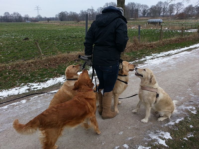Erstmal sind wir mit den Hunden eine Runde gegangen. Es war tierrisch kalt. Bonita hat sich nicht sehr gut benommen, denn erstmal musste sie jagen und Ohren auf Durchzug stellen, was natürlich Konsequenzen nach sich zog, denn ab da dürfte sie nicht mehr von ihrer Langlaufleine.