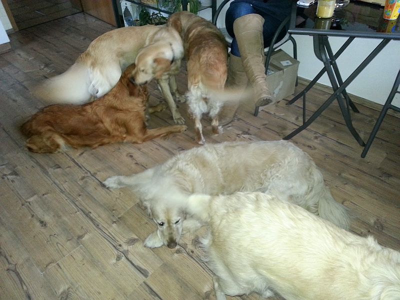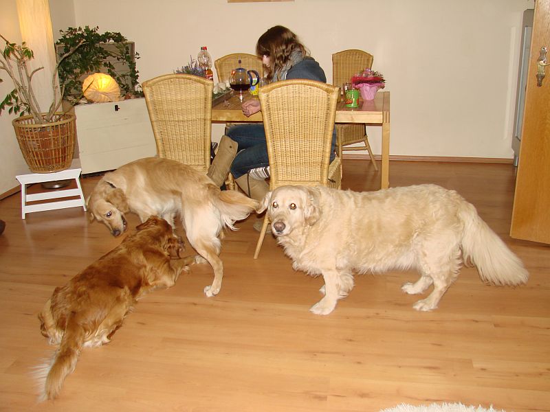 Wir haben dann zu Hause mit Svenja gemütlich gesessen, Tee getrunken, geredet :0). Ich habe gekocht und die Hunde leisteten uns in der Küche Gesellschaft.