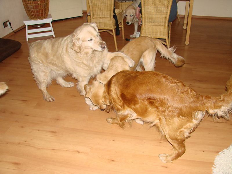 Danach saßen wir im Wohnzimmer und die Hunde haben immer wieder iteinander gespielt- sogar Oma Hera spielte mit Eden. Das war toll.