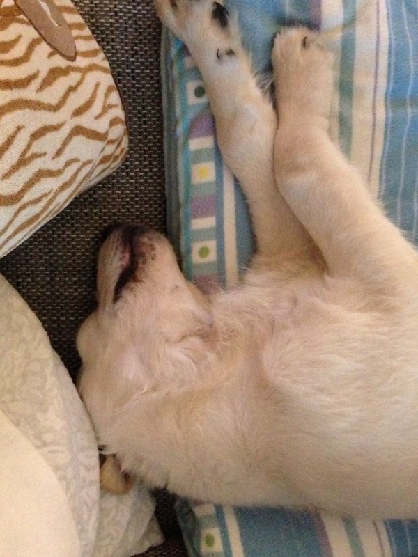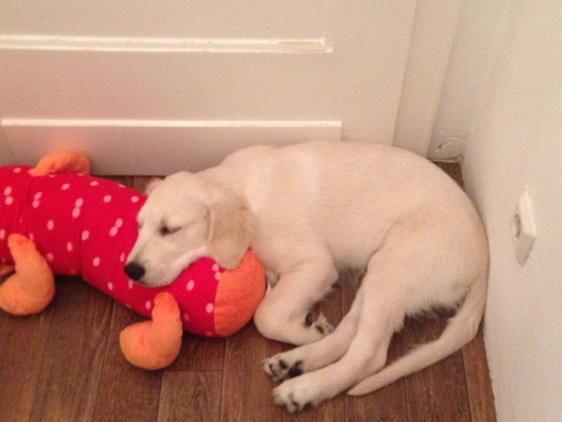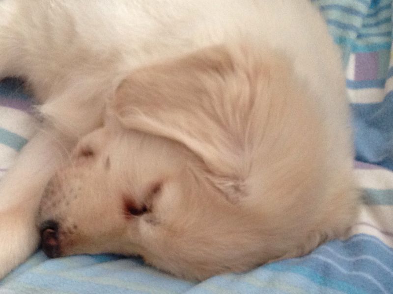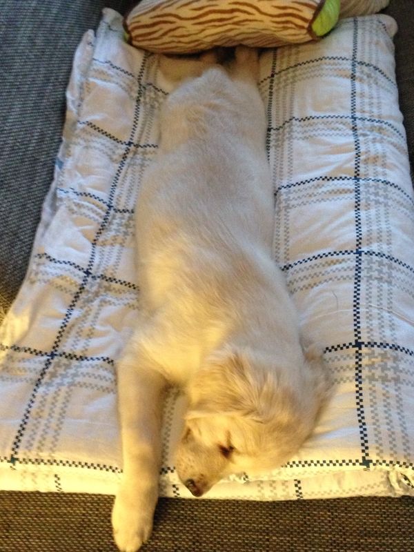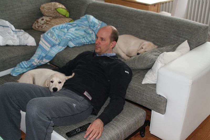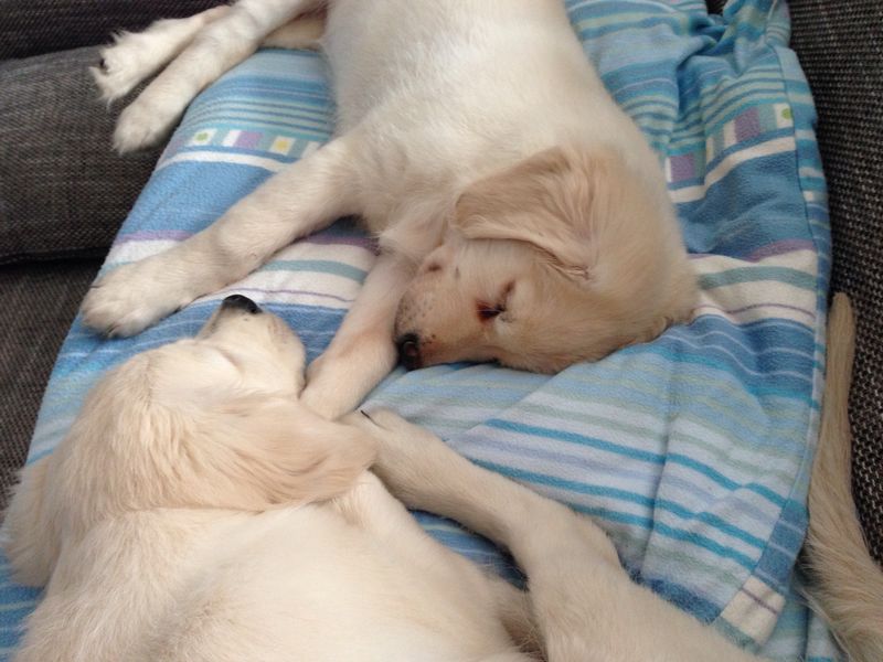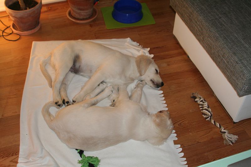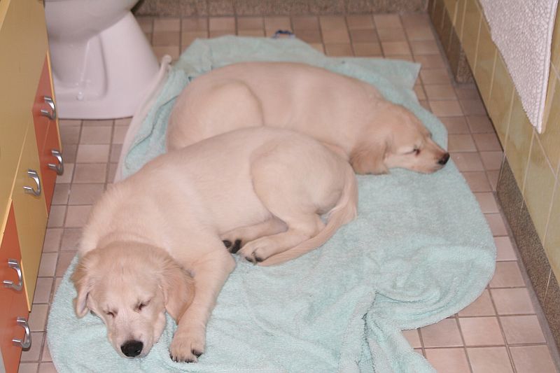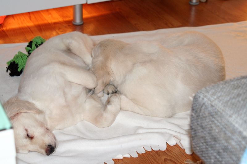 Kathrin berichtete mir heute, dass die beiden Welpen ziemlich schnell müde werden von den Unternehmungen, dem Draußen sein uns so. Klar- sind noch ziemlich klein.