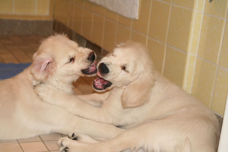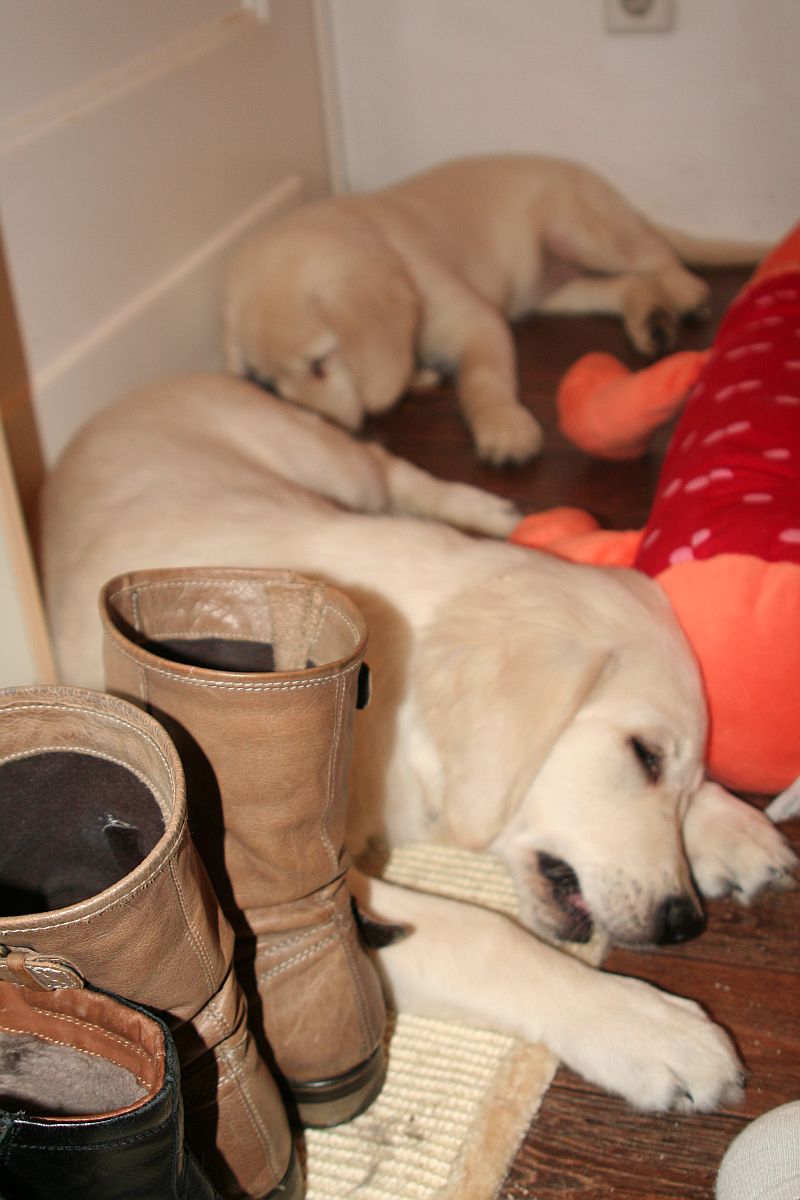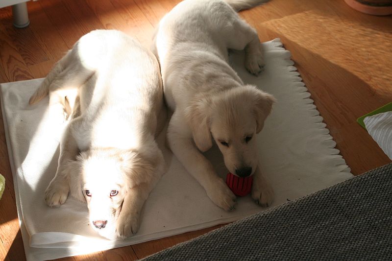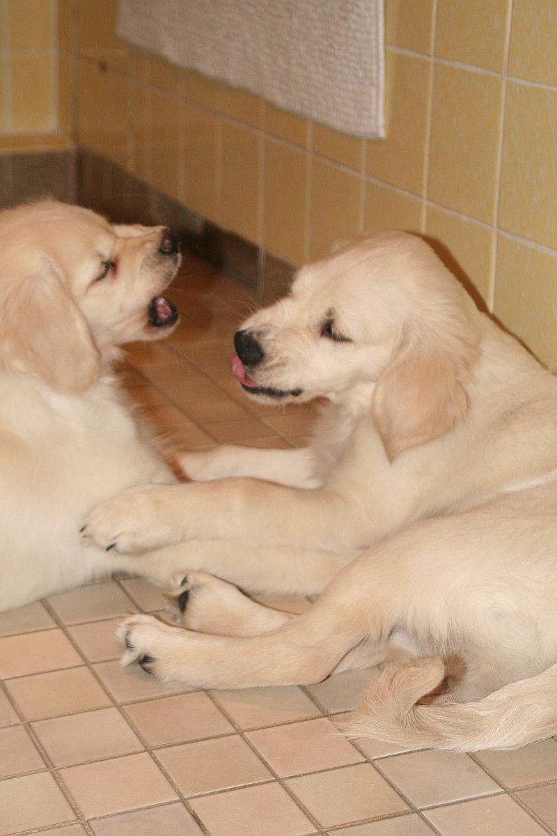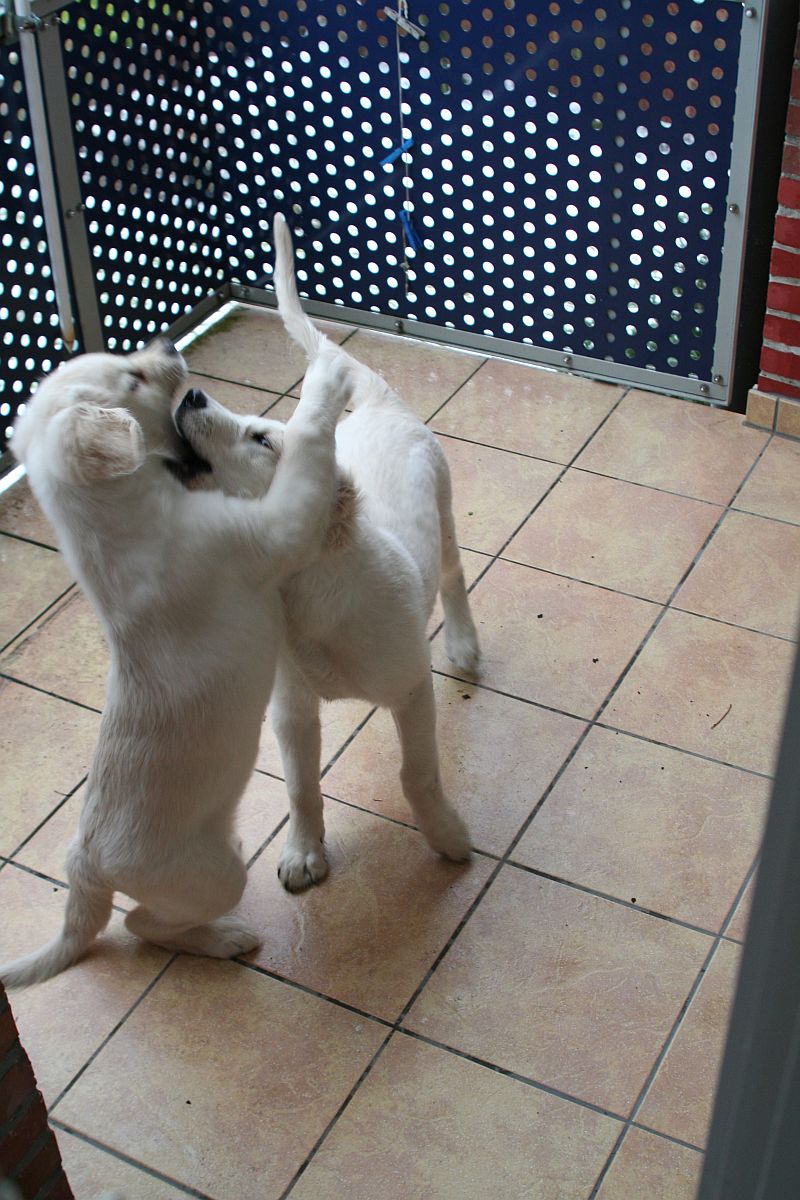 Frauchen erzählte mir gestern stolz, dass seit zwei Tagen das große Geschäfft nur draußen erledigt wird und sonat machen die beiden Geschwister unglaubliche Fortschritte im Puncto sauber werden- kaum geht etwas in der Wohnung daneben, was nicht sonst auf die Pischecke im Bad gehört- das so schnell in den Griff bekommen zu haben und dazu in einer Etagenwohnung- das ist bei zwei Welpen eine unglaubliche Leistung von den Besitzern, die zu Recht sehr stolz auf sich und ihre Lieblinge sein dürfen.