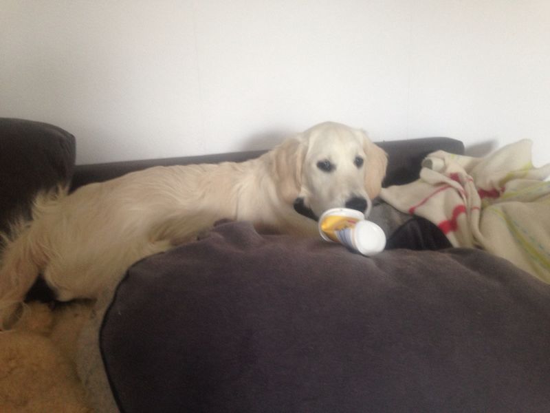Neulich sendete mir Andrea eine Fotogeschichte , wie Fionchen mit einem Puddingbecher kämpfte :o) Frauchen schrieb dazu: „.. Es ist schlimm, wenn man nie etwas zu Essen bekommt und dann auch noch der Puddingbecher leer ist…“