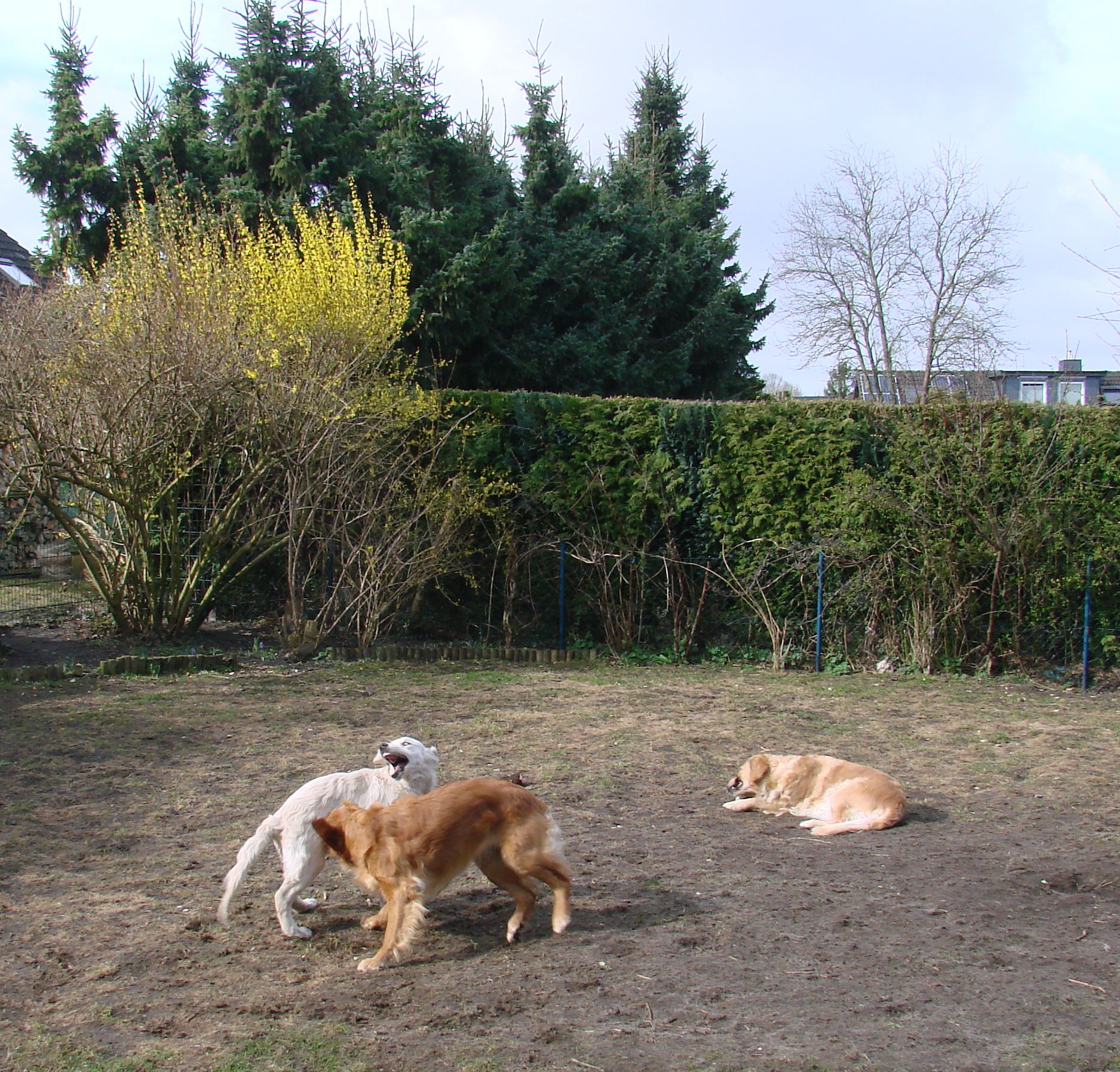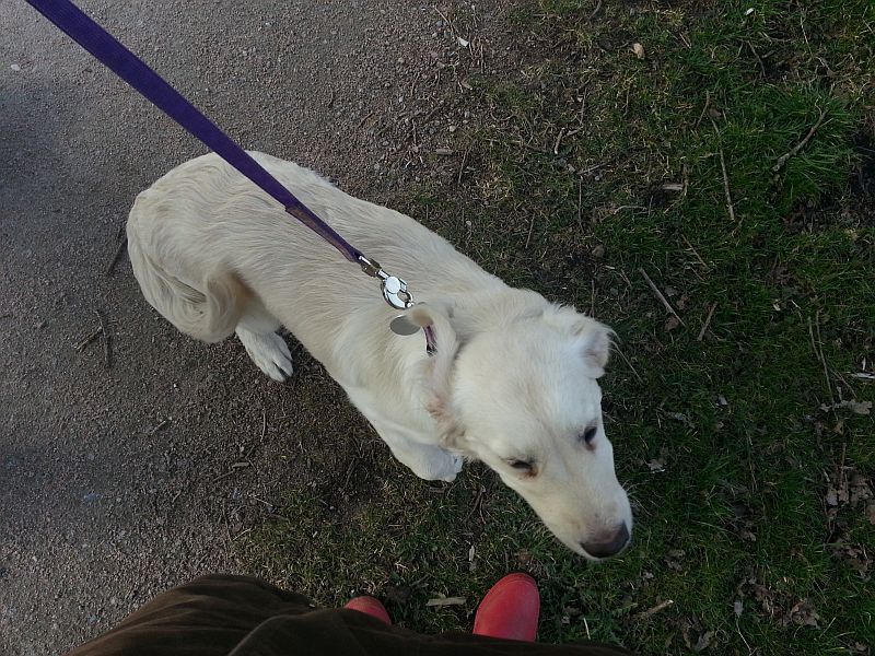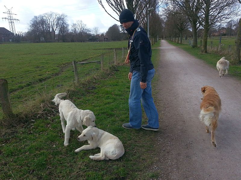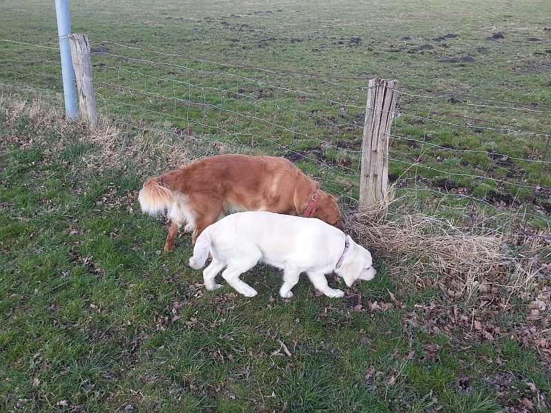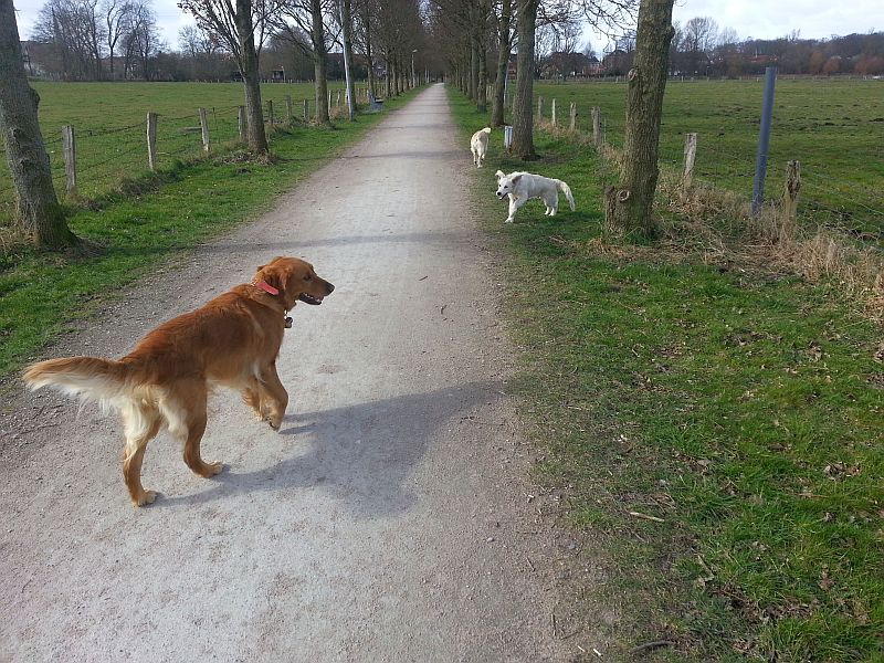 Wir waren erst bei mir und dann sind wir eine keline Runde zusammen gelaufen. Das Wetter war echt gräßlich, denn es war sehr windig und ungemütlich. Fantasy hatte echt Angst von den Windgeräuschen-daswar ihr nicht geheuer. Ihre mama Bonnie zeigte sich wieder mal von ihrer besten Seite: ist einfach kurz aber entschlossen abgehauen um etwas Schei… zu fressen. Niemand wollte danach mit ihr kuscheln :0)
