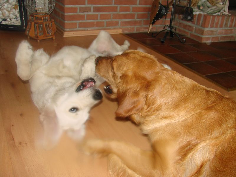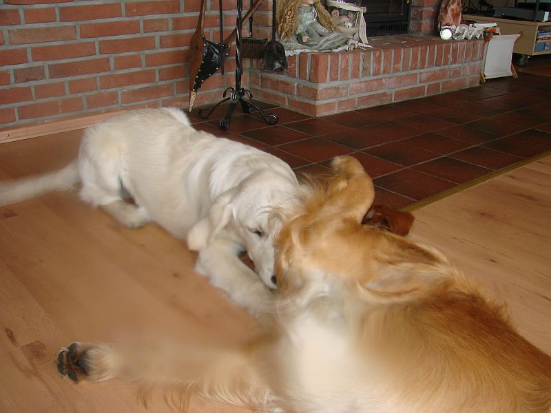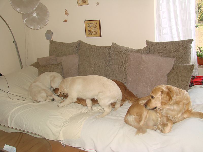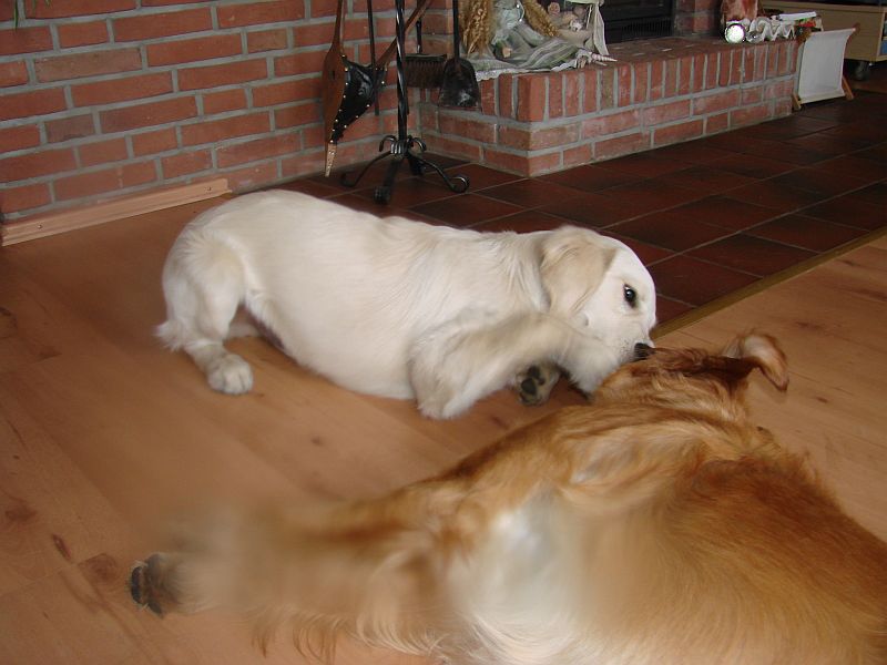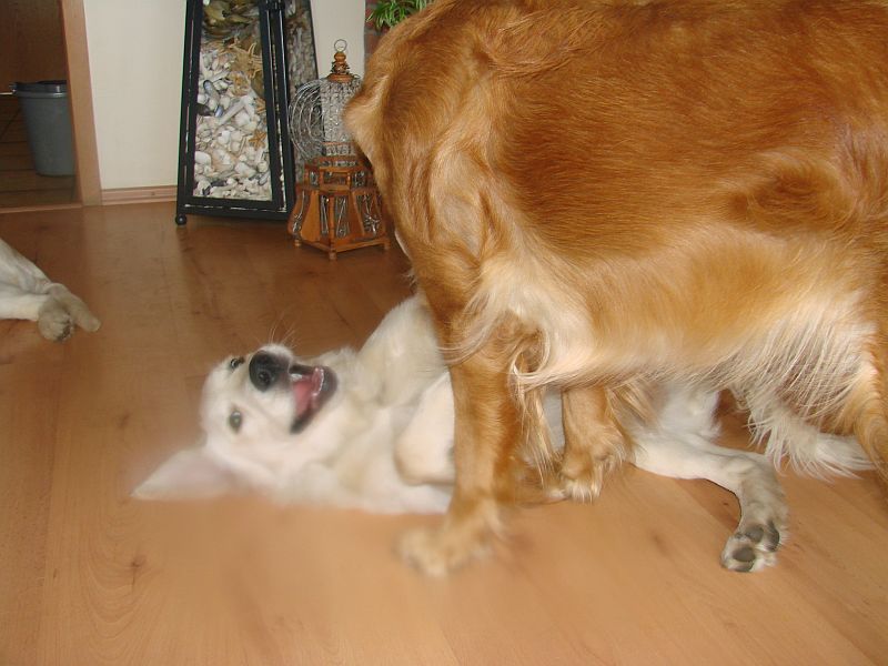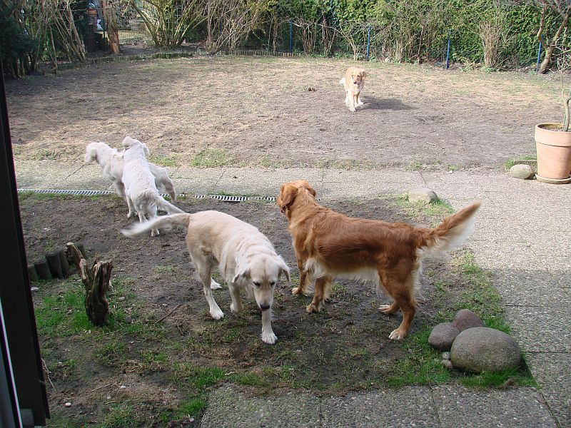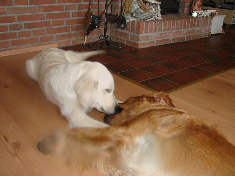 Das war wirklich sehr schön und die Hunde haben sich sehr gefreut-einander wieder zu sehen- was man bei den Welpen am Freudepischern unschwer erkennen konnte. Ihre mama Bonnie war richtig aus dem Häuschen- wollte nur putzen, putzen putzen. Crazy hat dafür am Besten mit den Kleinen getobt und gespielt. beide Omas waren etwas garstig und hielten sich lieber Abseits.