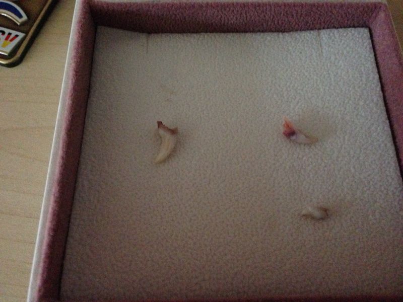 Hier noch die neuesten Fotos von Fantasy und Fuchur von heute, die ich via Whats App bekommen habe: Fantasy har wieder zwei Zähnchen verloren und dann gab es das erste Mal ein Schweineohr…