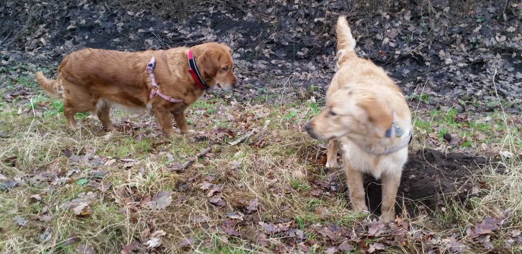 Die Mädels freuen sich auf die tägliche Runden. Ari, dass ihre lästigen Shirt und Tücher endlich weg sind. Die Wunde ist gut verheilt aber es ist noch eine deutliche Narbe da – langsam verheilt wohl auch alles innen, denn manchmal humpelt sie deutlich weniger. Ich werde noch zwei Wochen abwarten um zu sehen wie es sich entwickelt. Arielle ist aktuell läufig und ich hoffe echt,dass das letzte Mal ist.