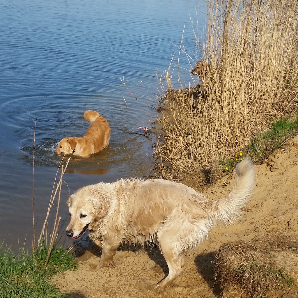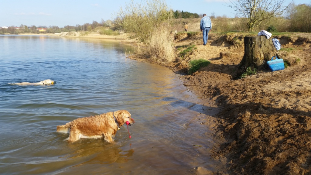 Gestern war nachmittag ein super Wetter-vor allem weil jetzt 2-3 Tage nicht mehr so schön sein, soll und die Mädels aber mehr Bewegung brauchen, sind wir,anstatt die übliche Runde zu gehen mit ihnen an den Baggersee gefahren.