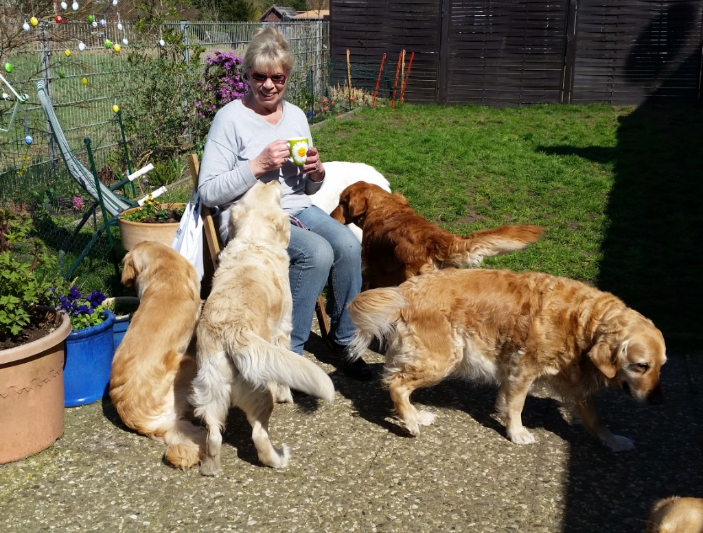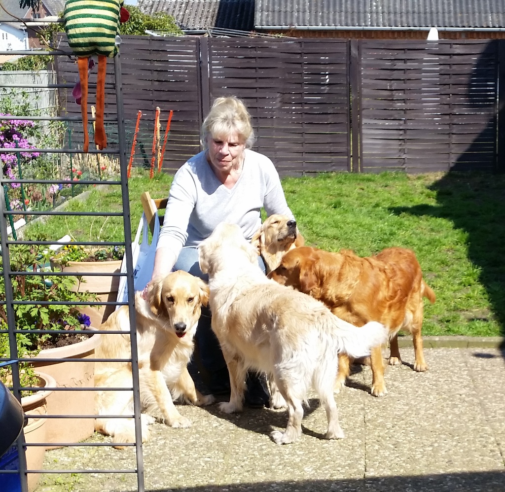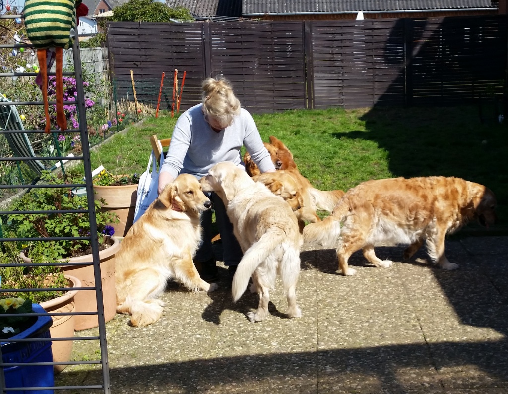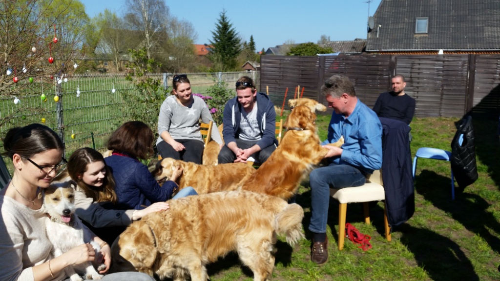 Ich habe still gehofft, dass wir den Wurf fast komplett am ersten Wochenende nach dem 10. ten Geburtstag wieder vereinen können- fast, weil die Chance den Angel eieder zu sehen sah ich als sehr gering: Angel ist der einzige Hund von Sweet Amber, von dem ich nicht weiß, wo er bleibt – Frauchen hat sich leider nicht an die getroffen Absprachen gehalten, und von Anfang an nicht, viel Wert auf den Kontakt zu dem Züchter gelegt.