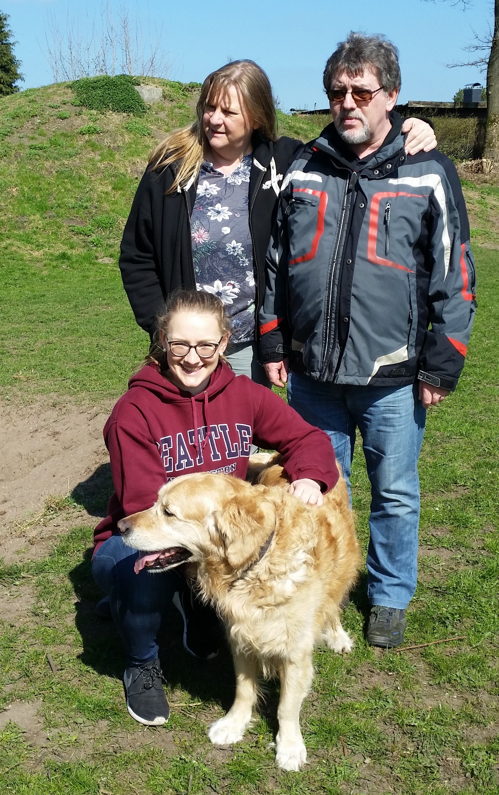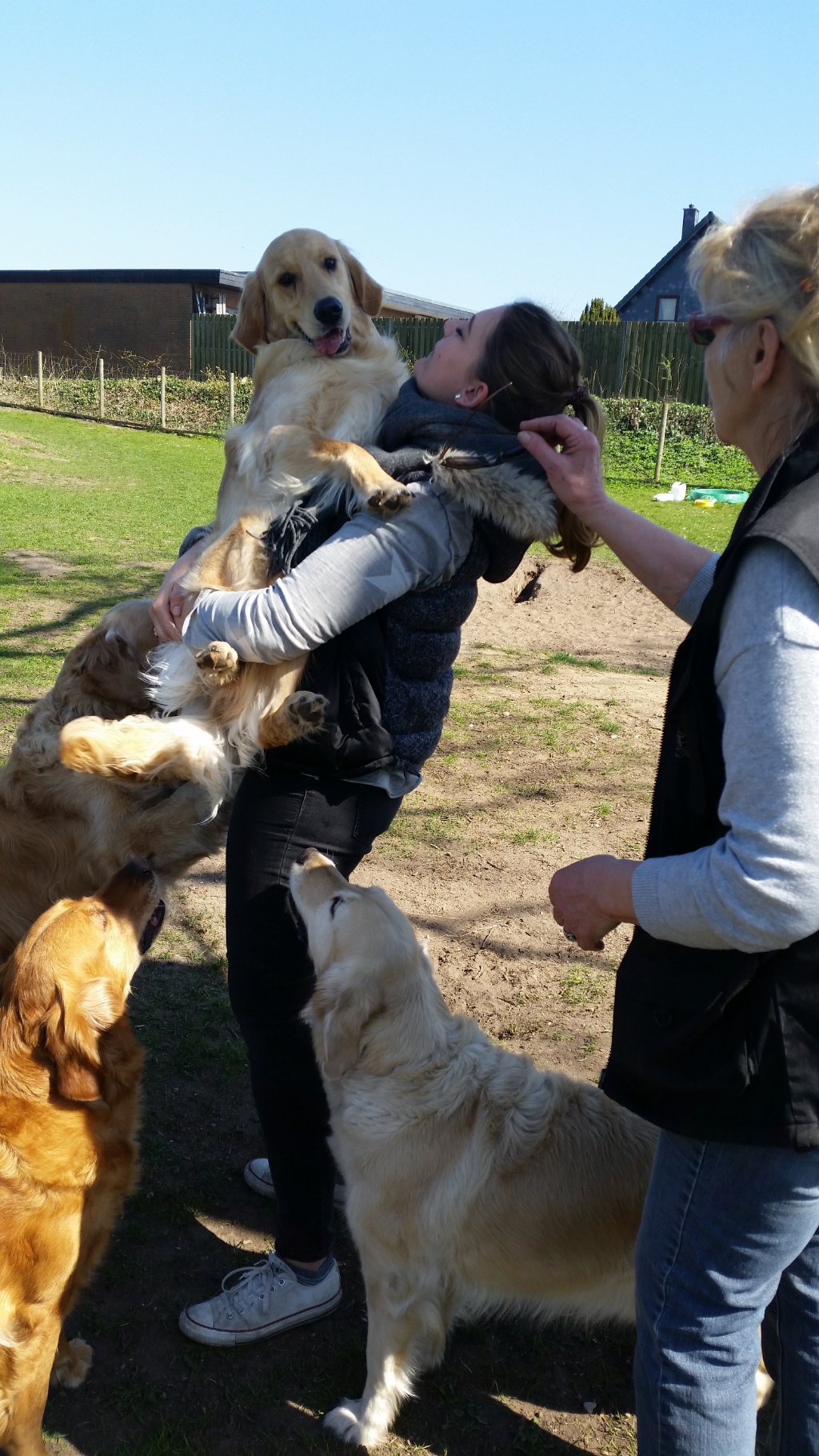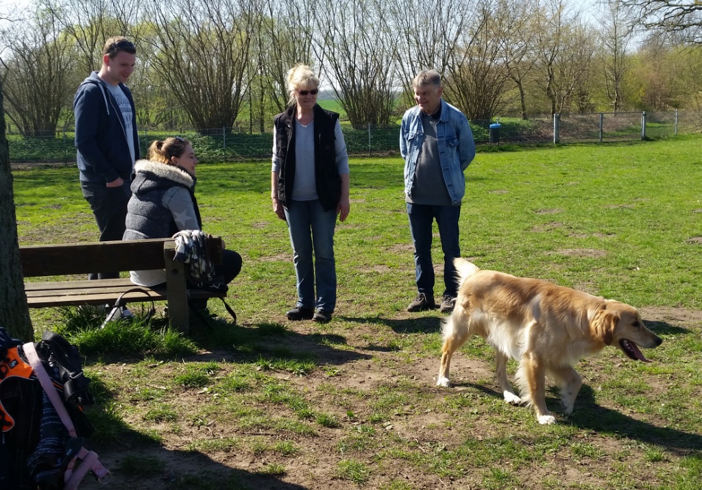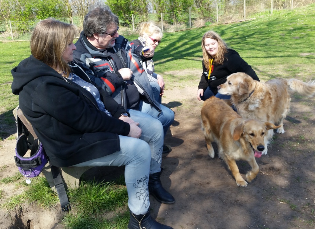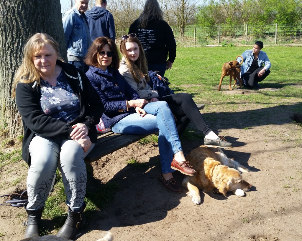 Drittes Hundetreffen vom Wurf A- Hundeauslauffläche Holstenhofweg : von links:Anja und James -die ersten Hundesitter von Sweet Amber, Alexandra und Brigitte Frauchen von Aragorn, Barbara Frauchen von Amigo