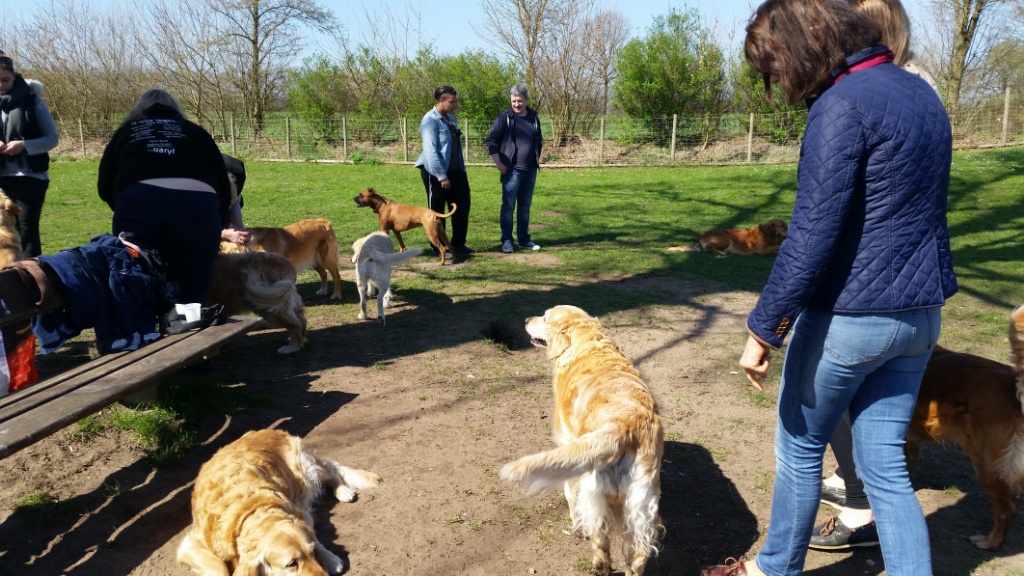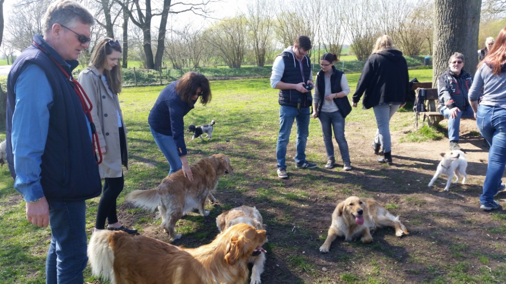Zu dem Treff waren außer Amaya und Gloria, Bella mit Herrchen und Freundin Chica mit Frauchen, Hunter gemeldet. Happys Freundin Abby aus der Hundeschule mit ihren Besitzern und ihrem Rudel, habe ich auch eingeladen. So waren wir eine lustige Truppe am Platz: