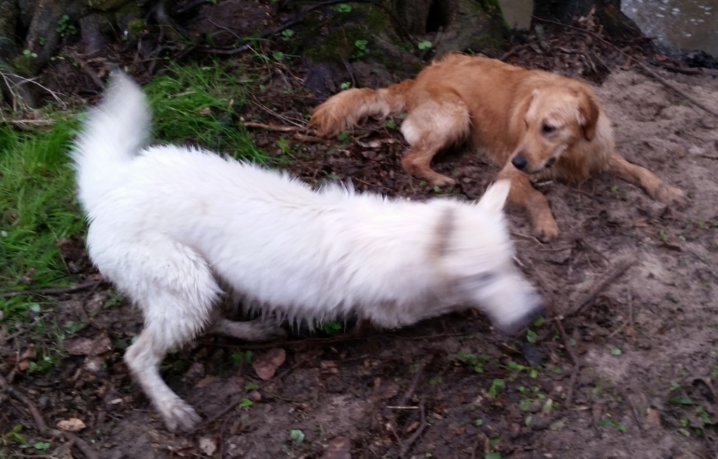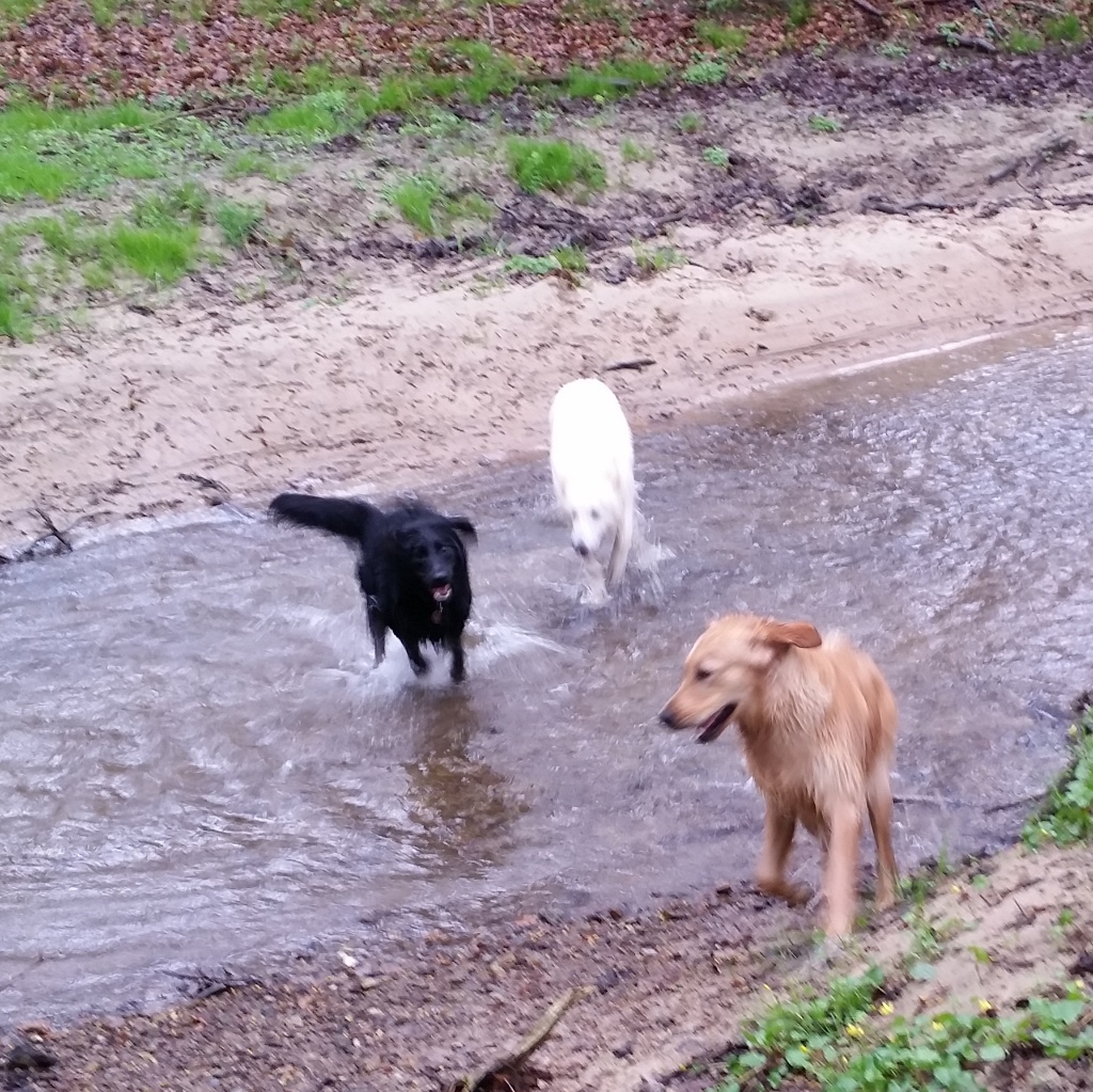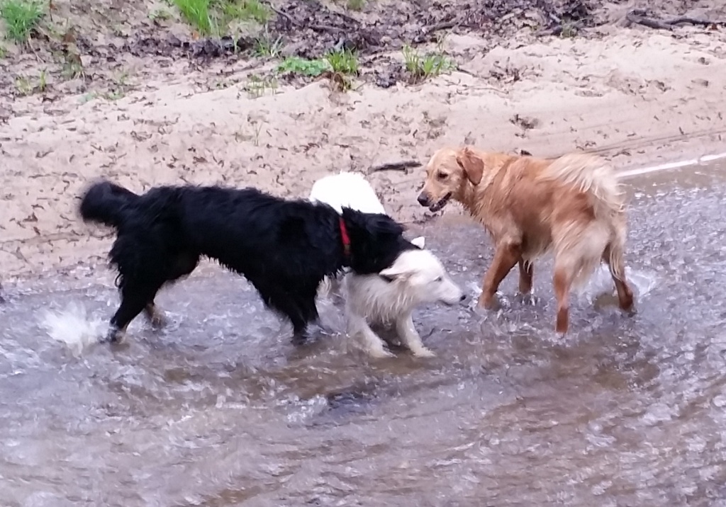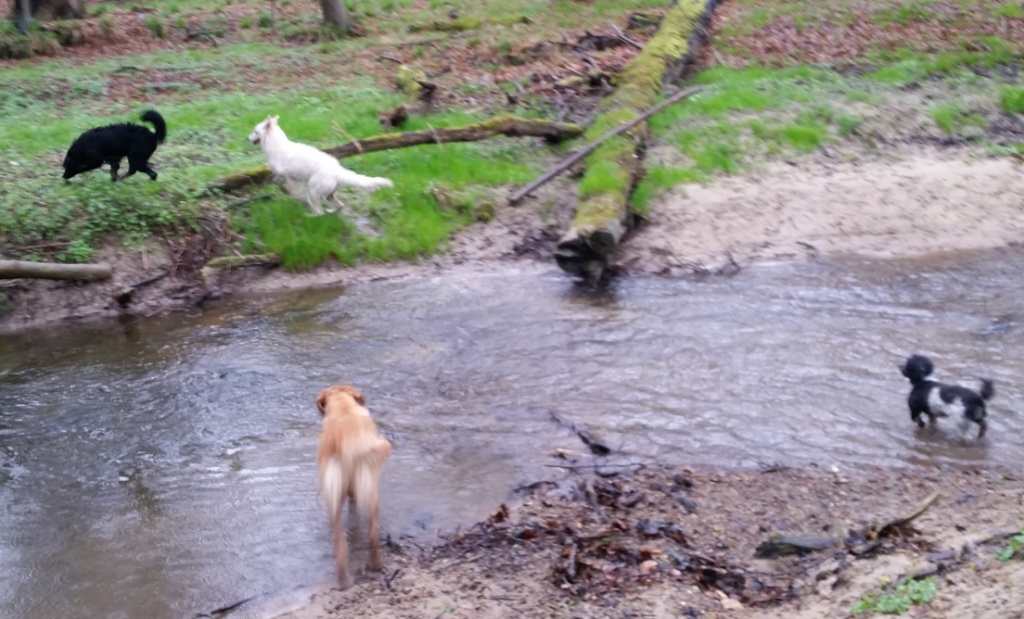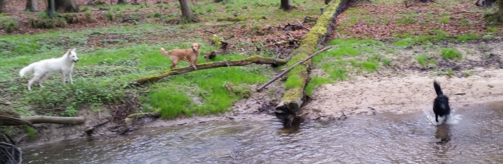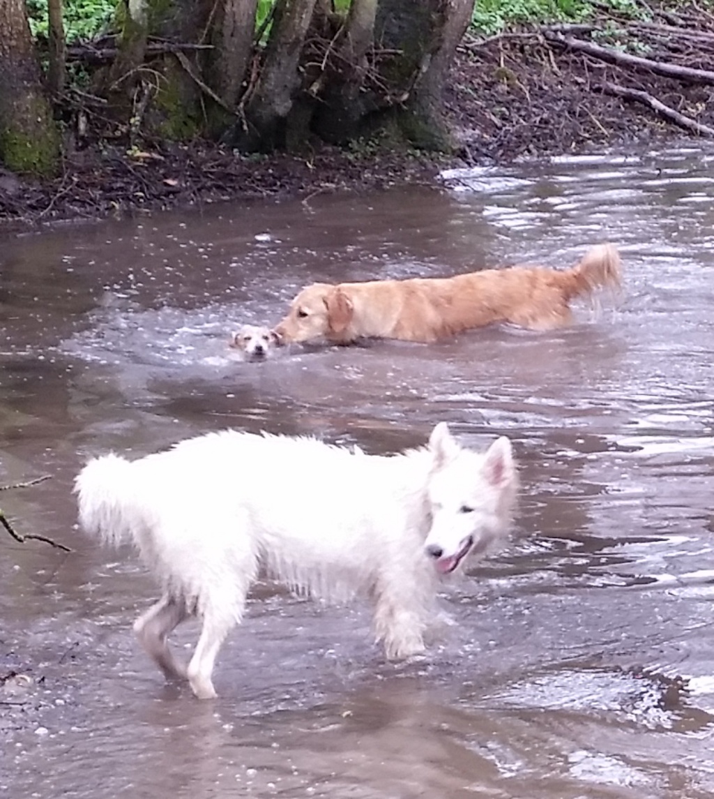 Meine kleine Happy hat sich am letzten Mittwoch mit ihren Freundinnen Abby und Celly getroffen. Wir waren schon wieder bei Jenny in Pölitz verabredet, denn sie wohnt echt traumhaft am Dorfrand und hat ein riesiges Anwesen mit Pferdekoppeln und einem Waldstück inclusive. Zwar warecht ein sau Wetter, aber Spaß gemacht hat es uns trotzdem -die Hunde tobten ausgelassen im Bach,schwammen,wälzten und jagten sich-es war sehr sehr schöner Nachmittag. Abby hatte ihren Rudel dabei- die beiden Kleinen, die auch bei uns auf dem letzten Treffen waren. Den Nachmittag ließen wir bei Tee und Kuchen ausklingen. Das nächste Mal treffen wir uns bei uns in Seth auf dem Hundeplatz und dann in der Feldmark und bei mir. Hier Fotos von unserem letzten Treffen und liebster Gruß an Jenny und Christine mit ihren Fellnasen:
