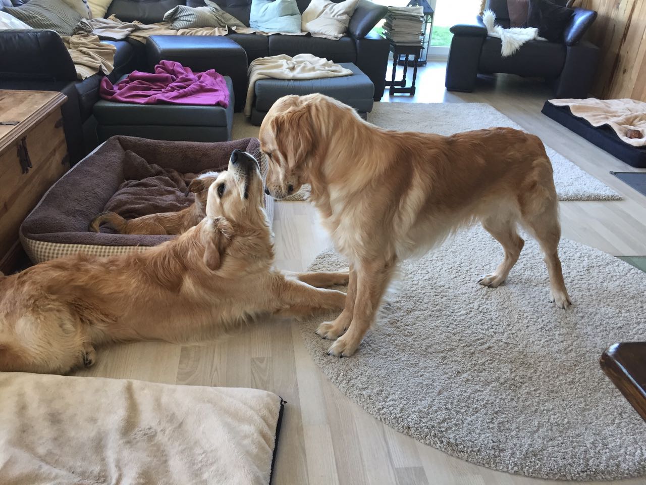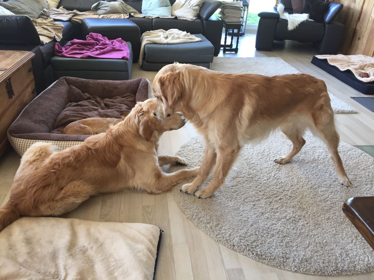 Die Freundschaft zwischen den Besitzern von den beiden Rüden wächst,was für die Brüder toll ist – diesmal war Hunter zu Besuch bei Hugo mit seinen Menschen. Hier viele schöne Fotos die mir Frauchen Hunter geschickt hatte!Ich freue mich, dass die beiden Hunde sich so gut entwickeln und so viel Spaß miteinander haben…