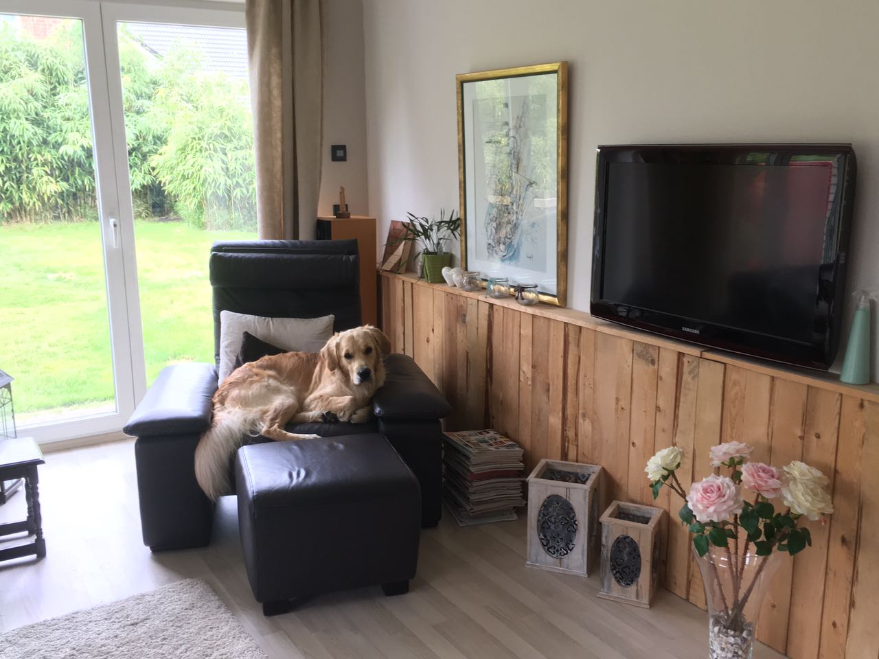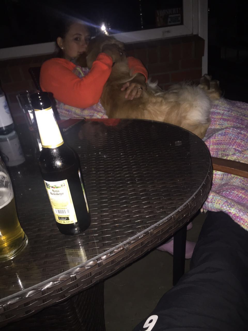 Hunter genießt mit Frauchen die Kuschelstunden auf der Terrasse und zu Hause: