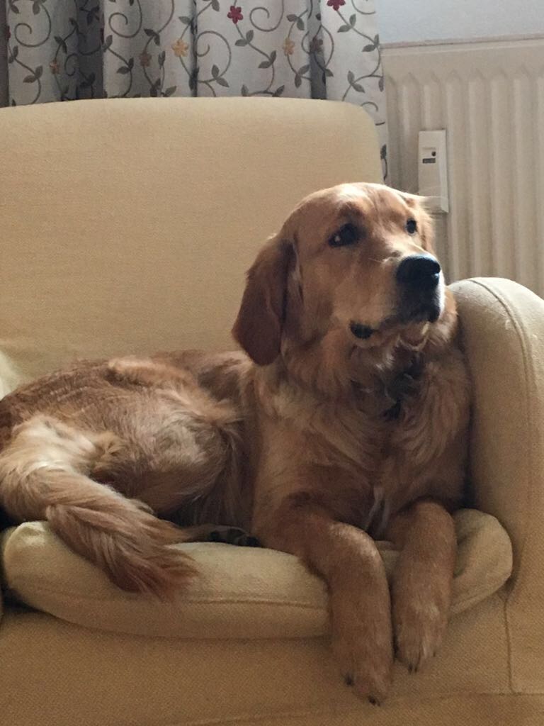 Hugo beansprucht jetzt für sich den Lesesessel vom Frauchen😂😂😂: