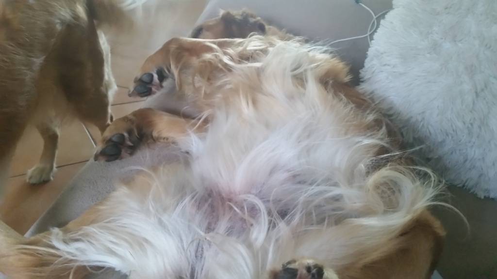 Der Bauch von Crazy wächst und wächst. Das ist schön und gut, aber sie hat noch zwei Wochen und ist schon echt dick. Heute hatte sie die ersten Senkhwehen. Ja die Zeit ist bald da…