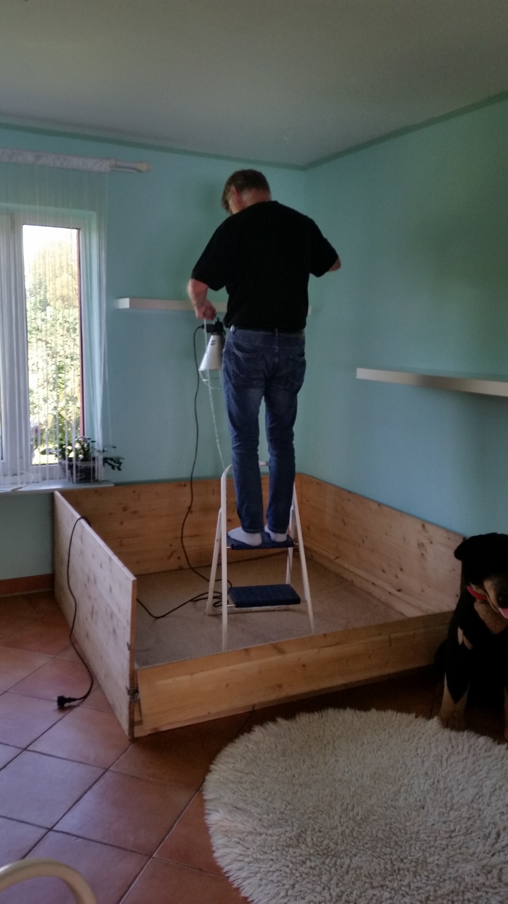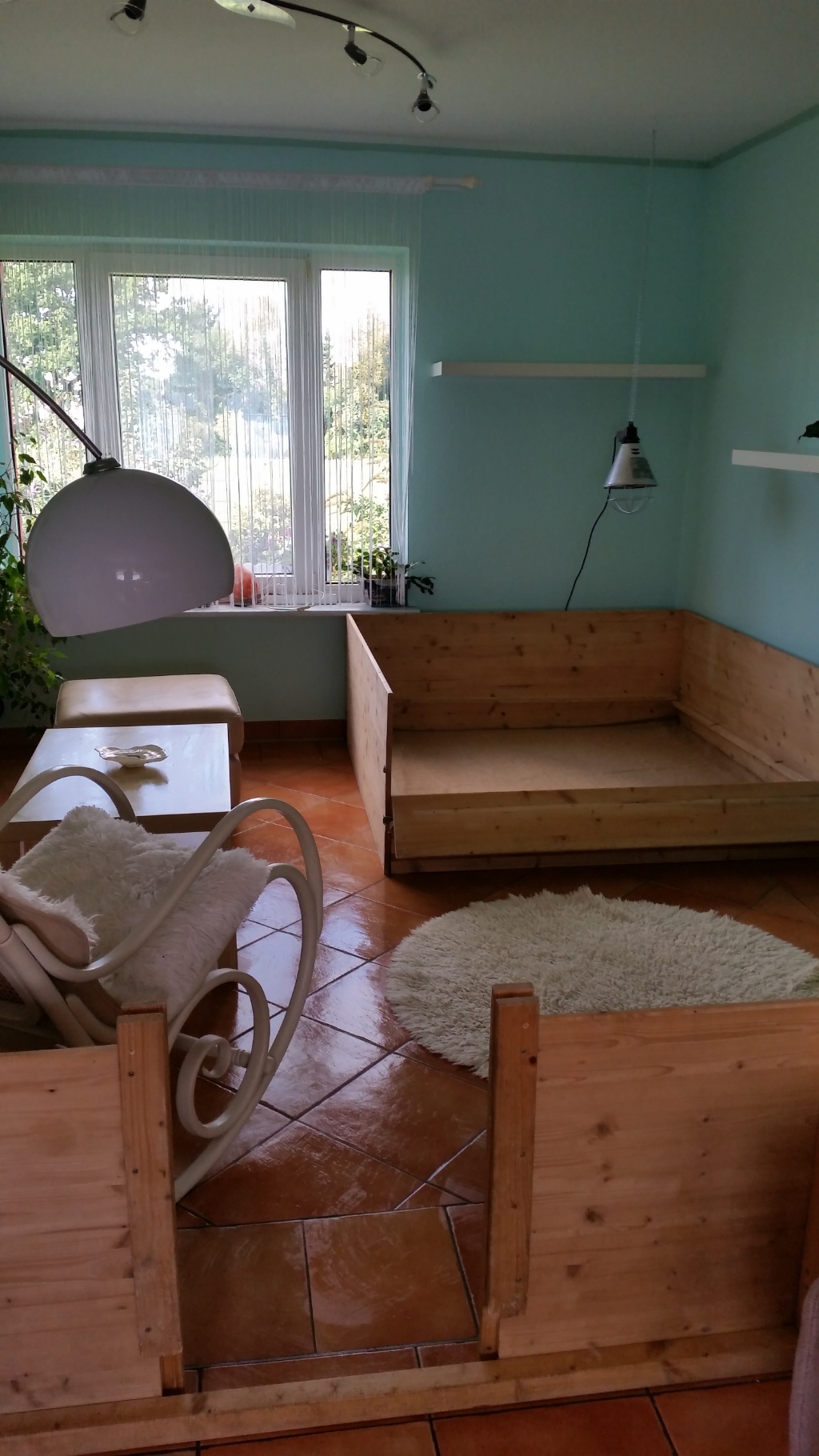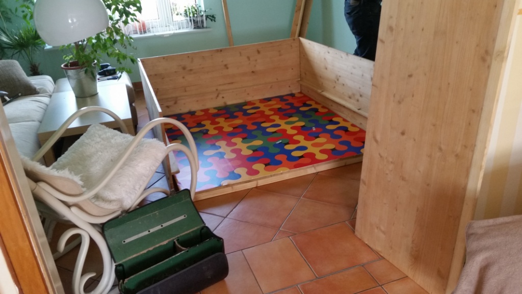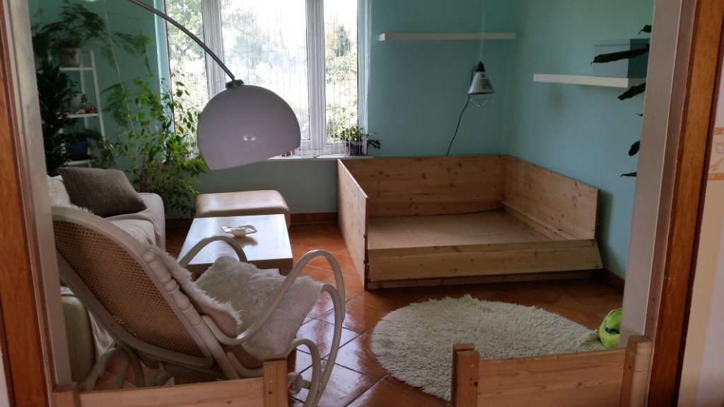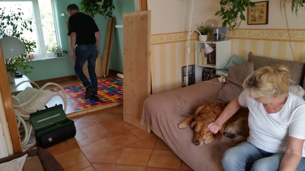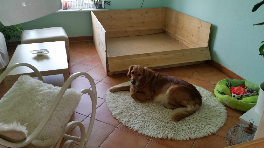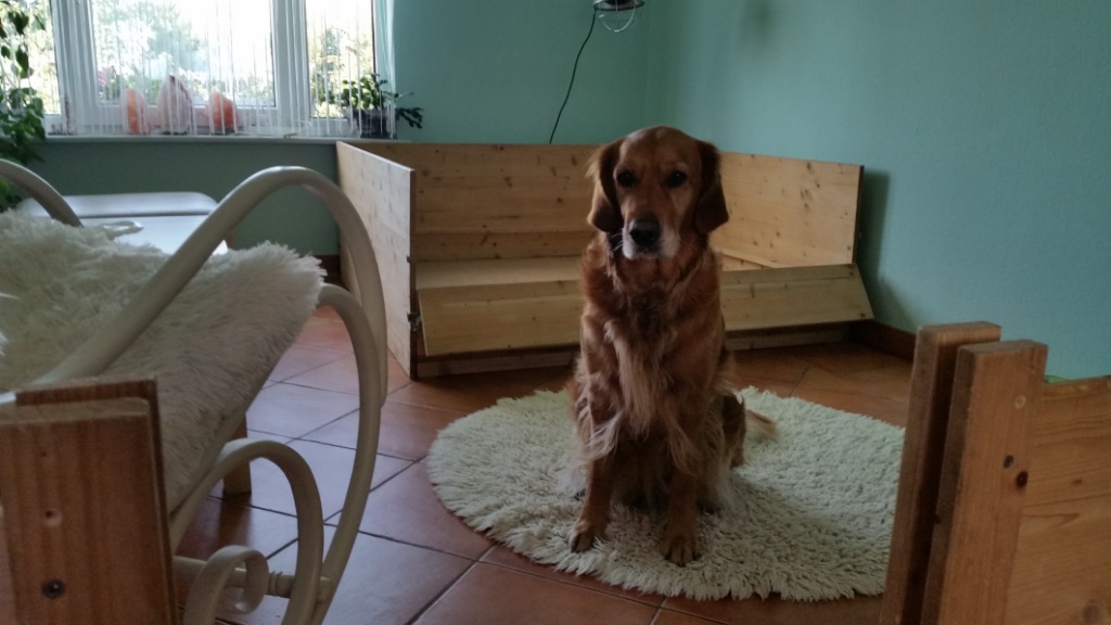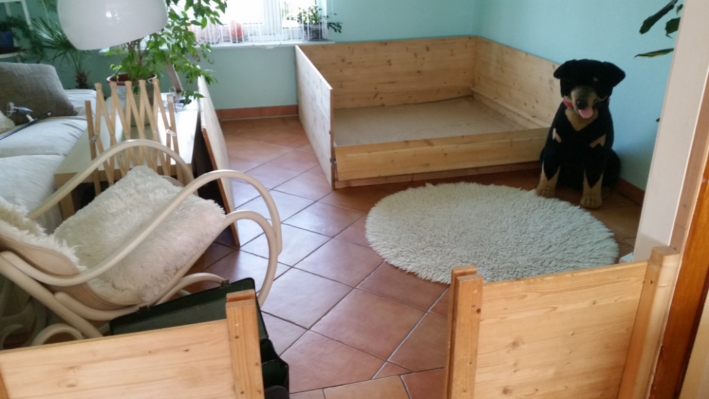 Nun muss ich noch das andere Zimmer zu Ende ausräumen, das Haus von oben bis nach unten putzen, damit das für eine Weile reicht und die andere Waschmaschine muss angeschlossen werden. Die Wurfkiste für Bonita habe ich schon seit 2 Jahren stehen- die habe ich unseren ehemaligen Zuchtwärtin abgekauft, als sie mit dem Züchten fertig war. Und nachdem wir sie nun begutachten haben, bin ich mit ihr zufrieden – nach kleineren Reparaturen wird sie reichen.