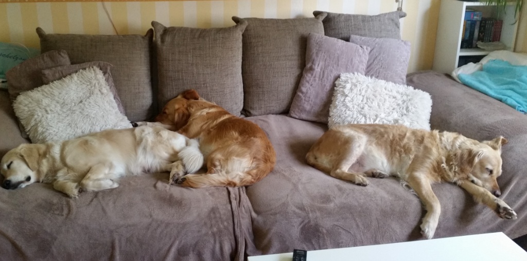 Während wir gearbeitet haben, waren die Hunde wenig an dem ganzen Trubel interessiert und schliefen oder kuschelten mit Angelika und miteinander.