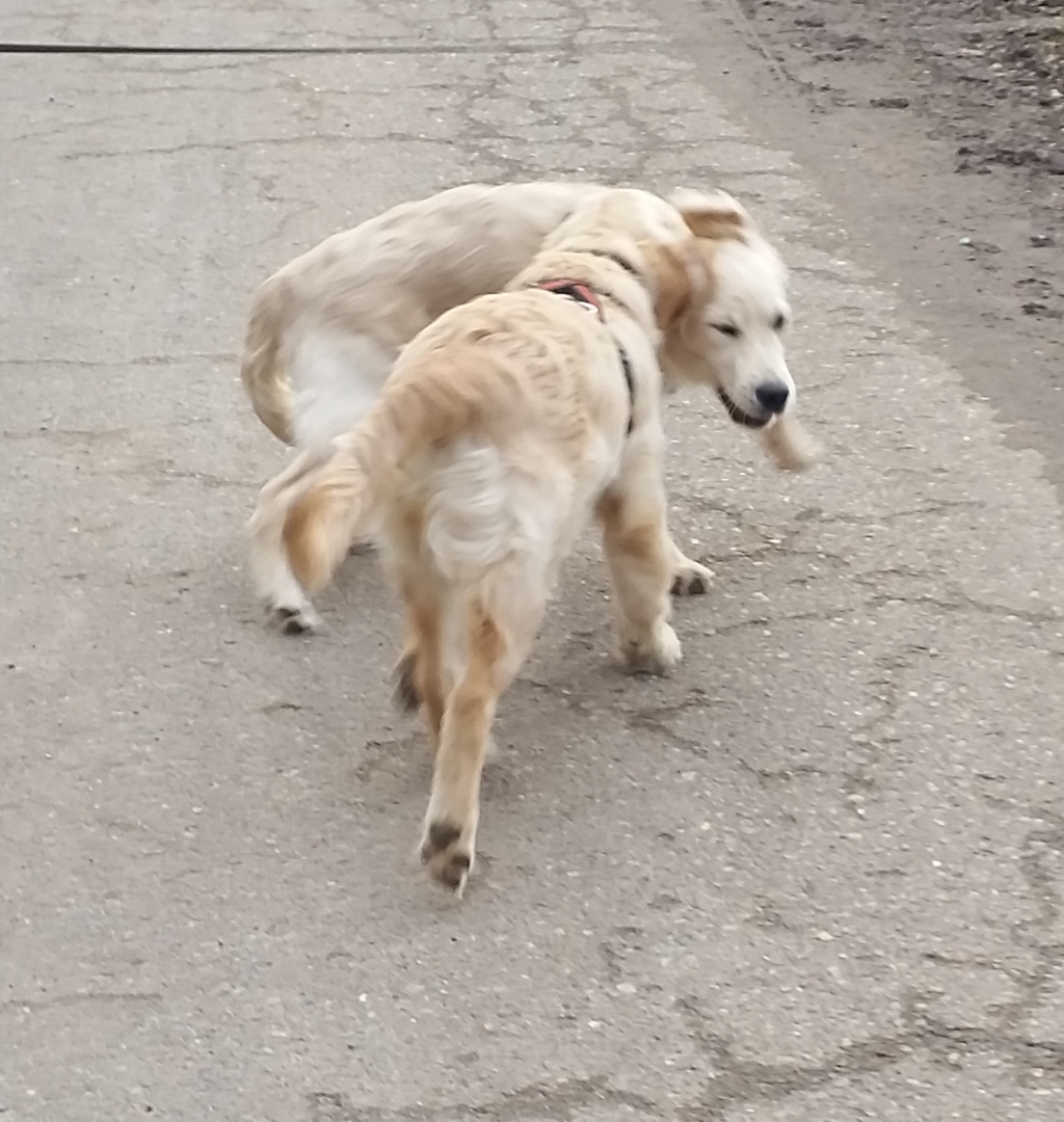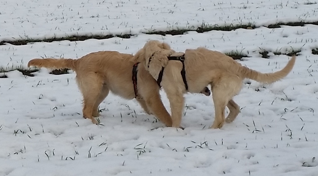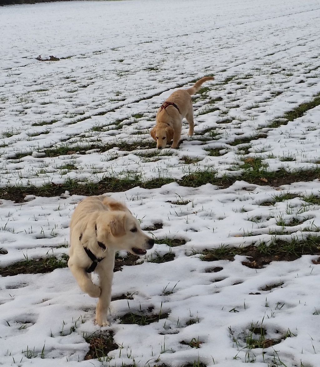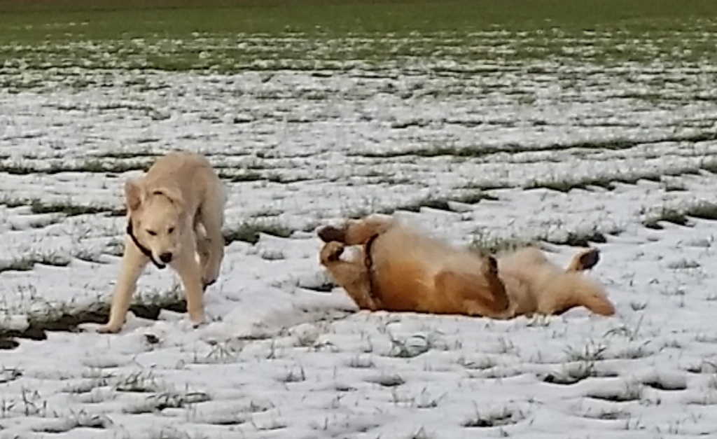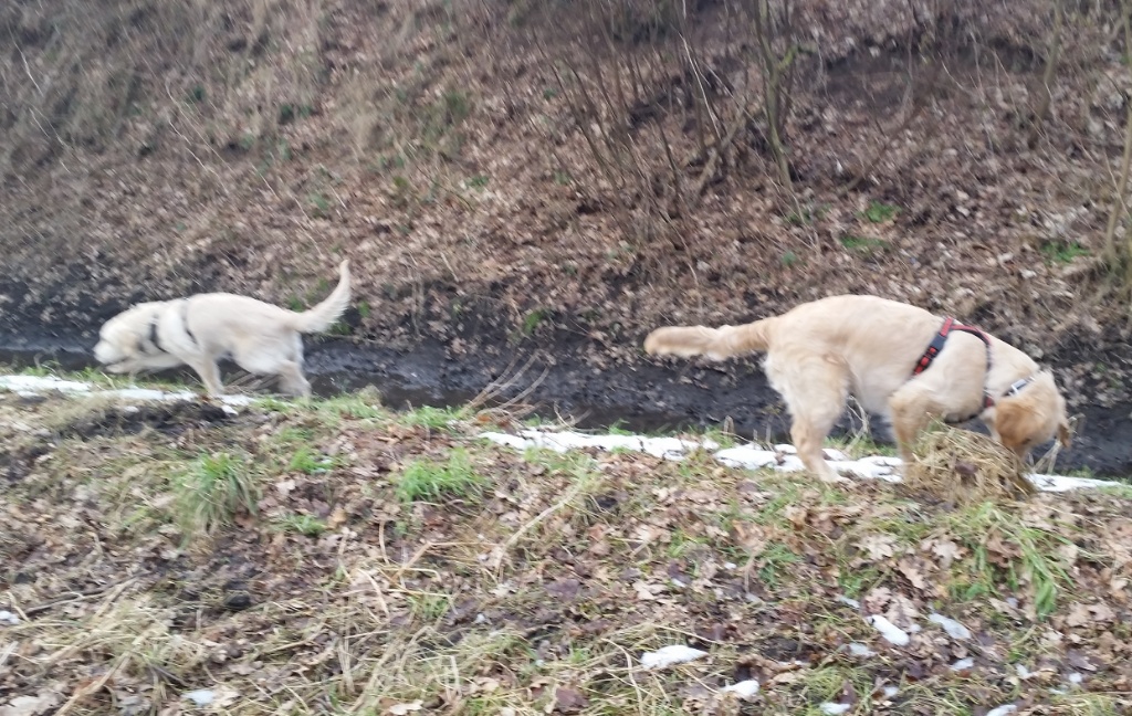 Nach dem Spaziergang am Dienstag musste ich Joe sogar abduschen, was er gar nicht so witzig fand. Anders ging es aber nicht, weil er sehr dreckig war. Seine Schwester stand ihm in nichts nach – Und so war uns nicht langweilig.