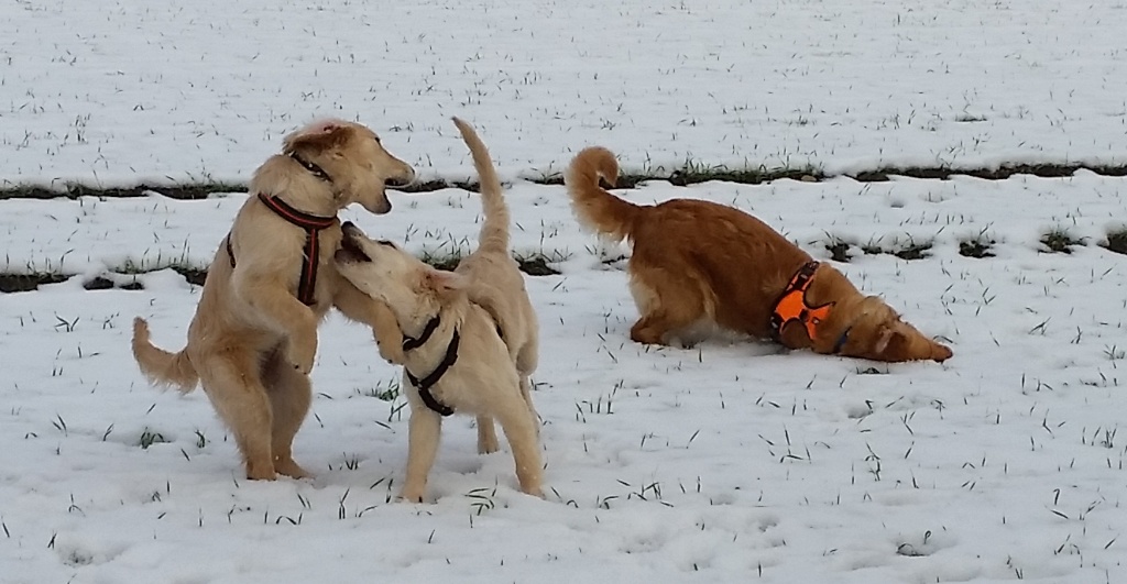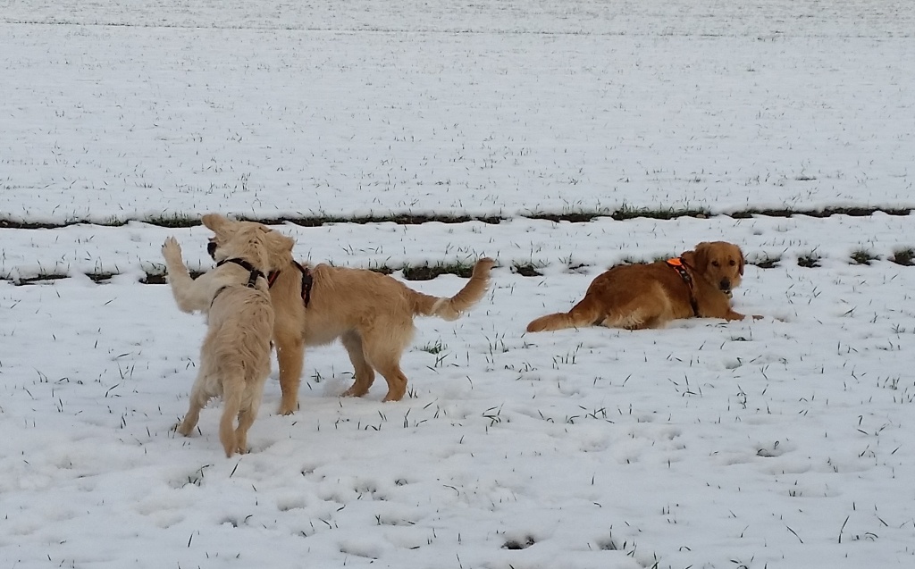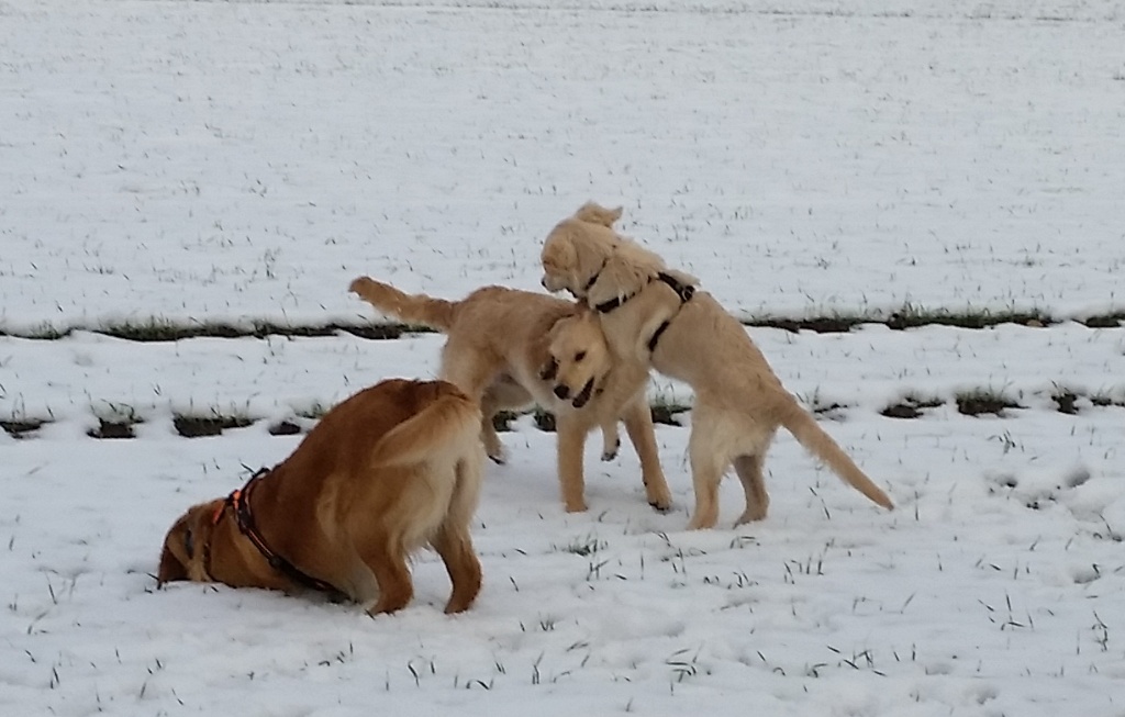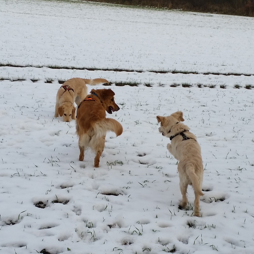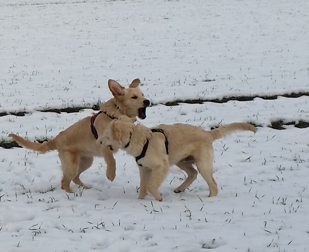 Die beiden Welpen mischten mein Rudel gehörig auf. Wir mussten echt für Ruhe sorgen, denn die kleinen Hunde wollten nur eins: tobben, tobben, tobben. Das dürften sie auch, aber in Maßen.