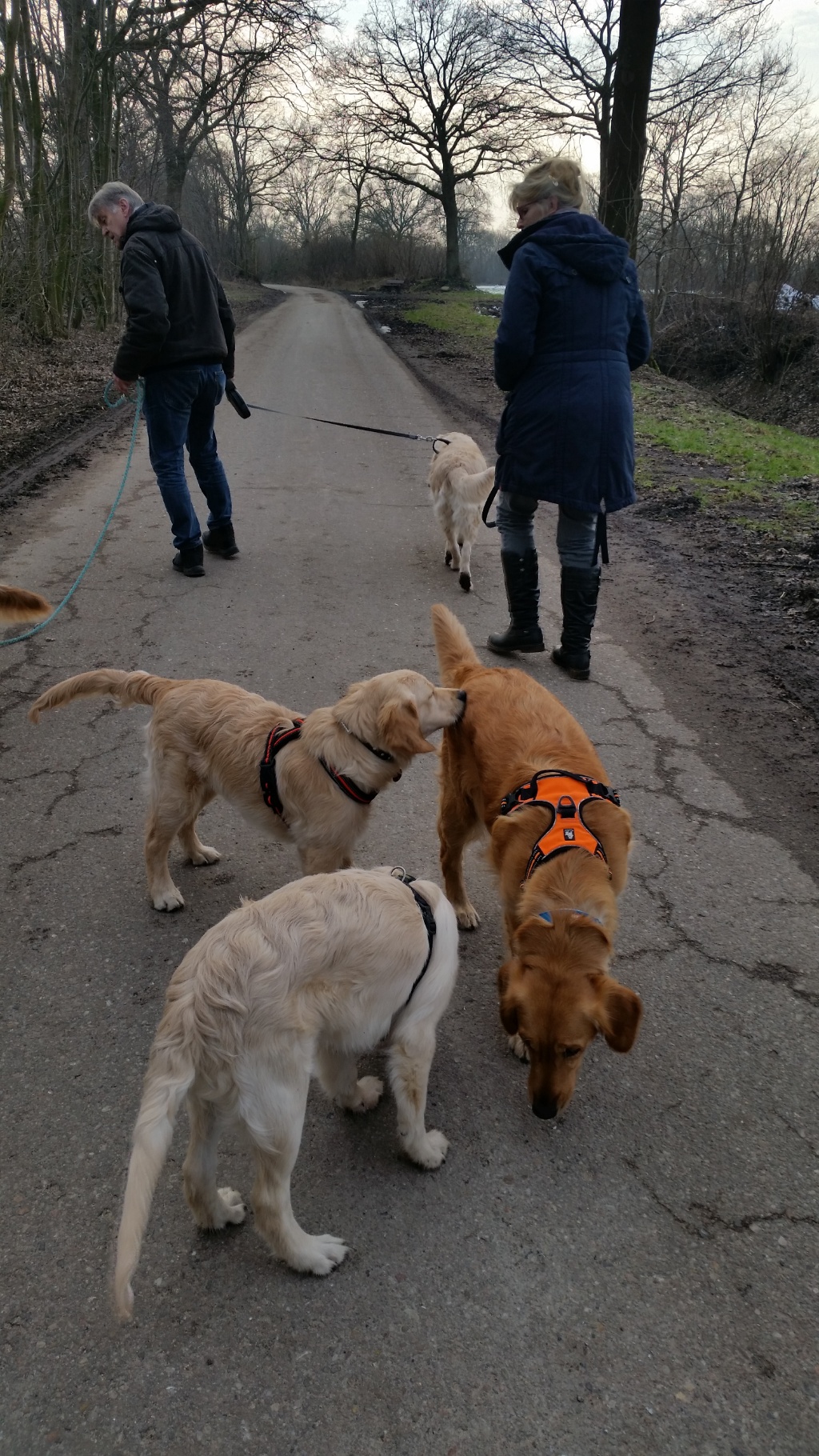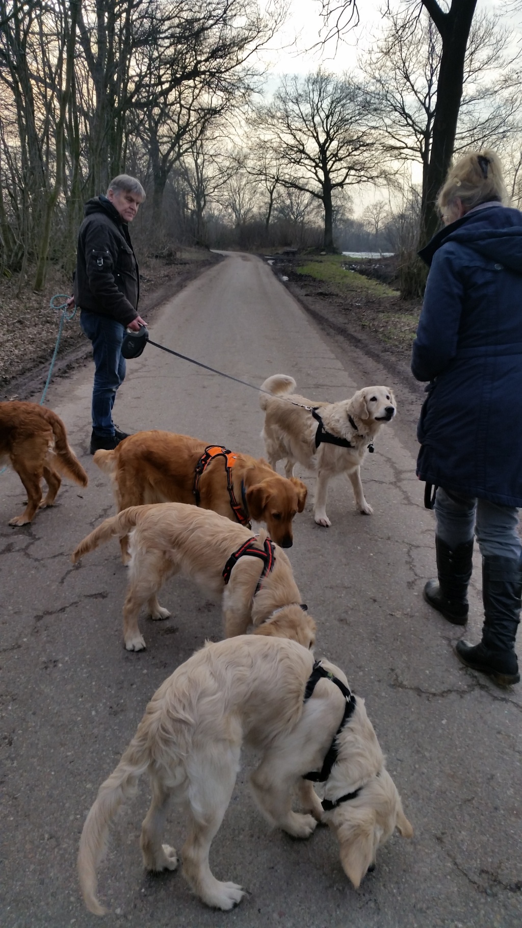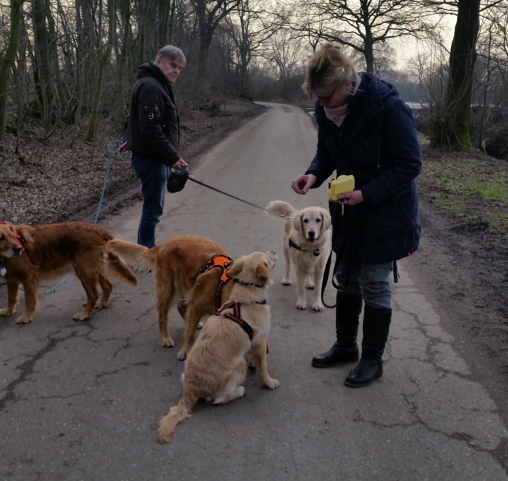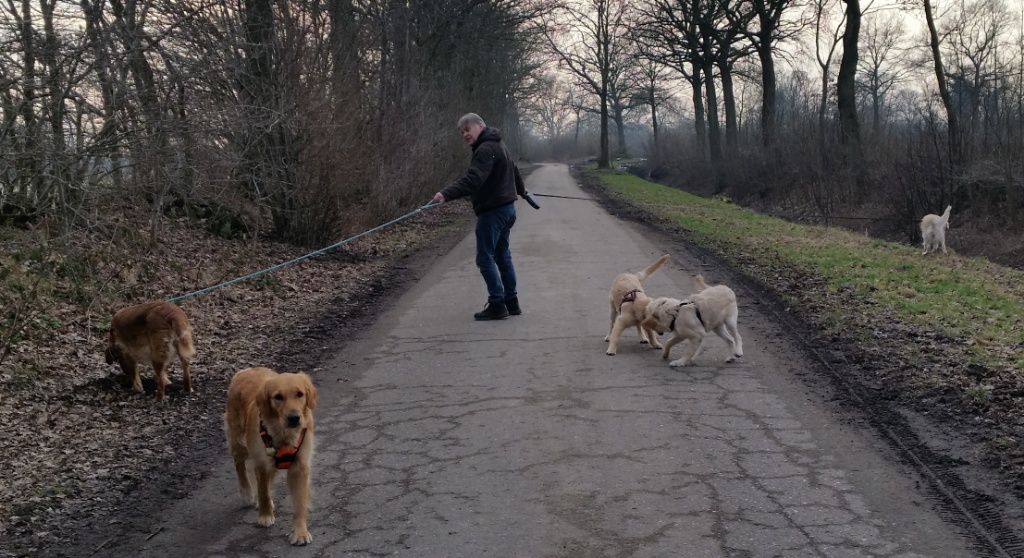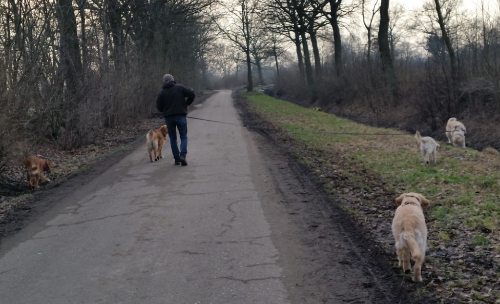 Ich habe zugesehen, dass ich in der Pause nach Hause kam und wir mit allen Hunden eine Runde drehen könnten. Das war auch richtig schön, obwohl auch anstrengend.