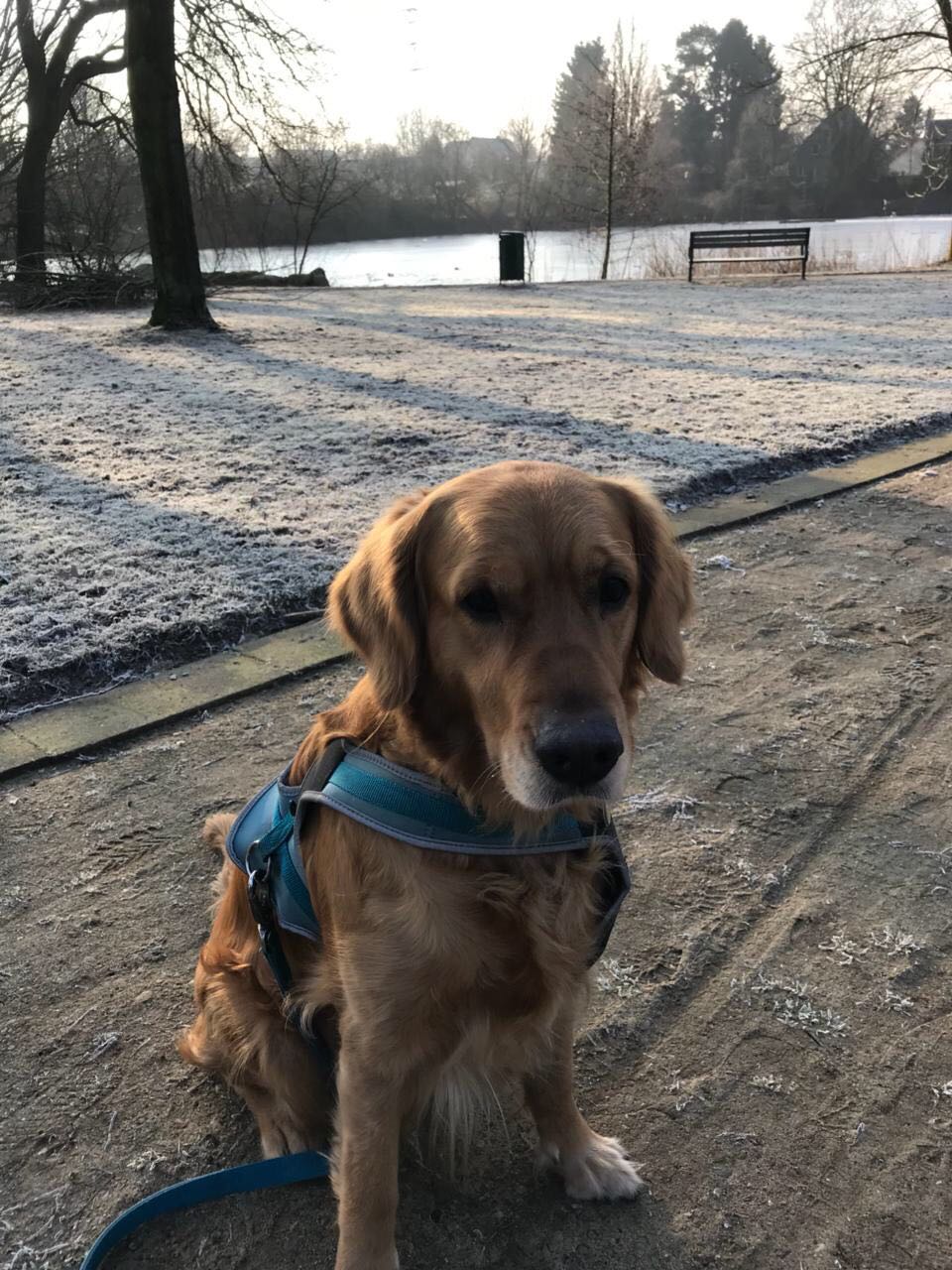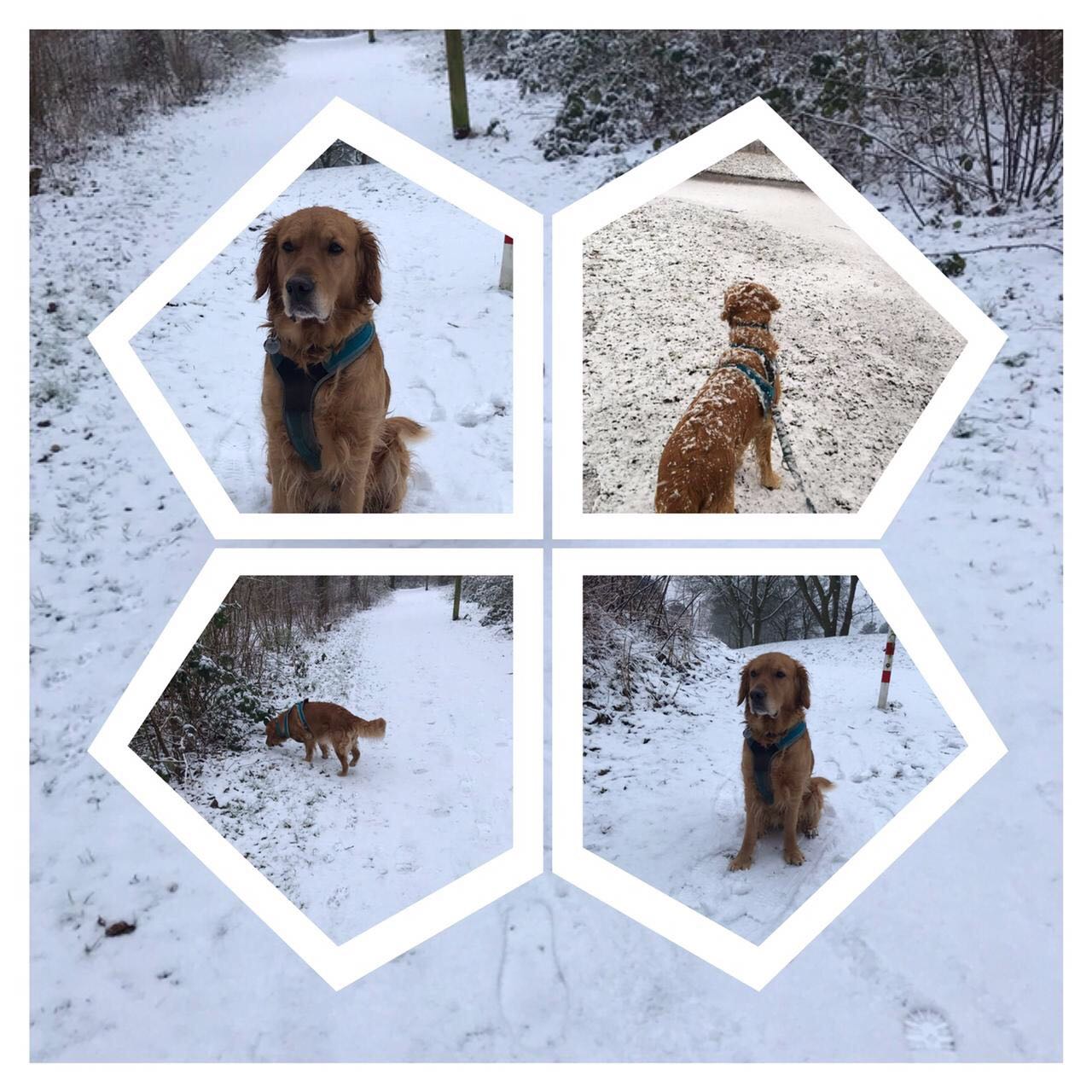 Frauchen Angelika hat mir per WhatsApp schön bearbeitete winterliche Impressionen von ihrer Hündin Cinderella geschickt. Hier sind sie und ich grüsse schön nach Hamburg.