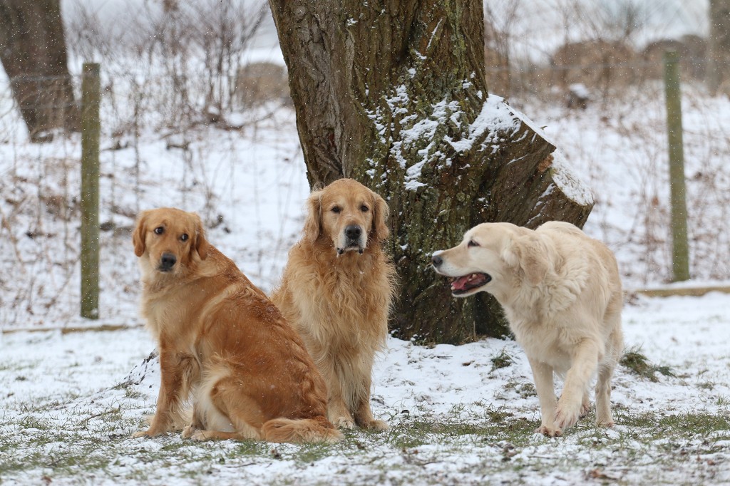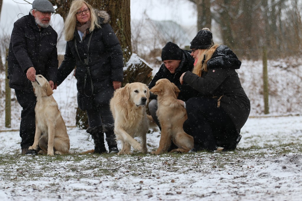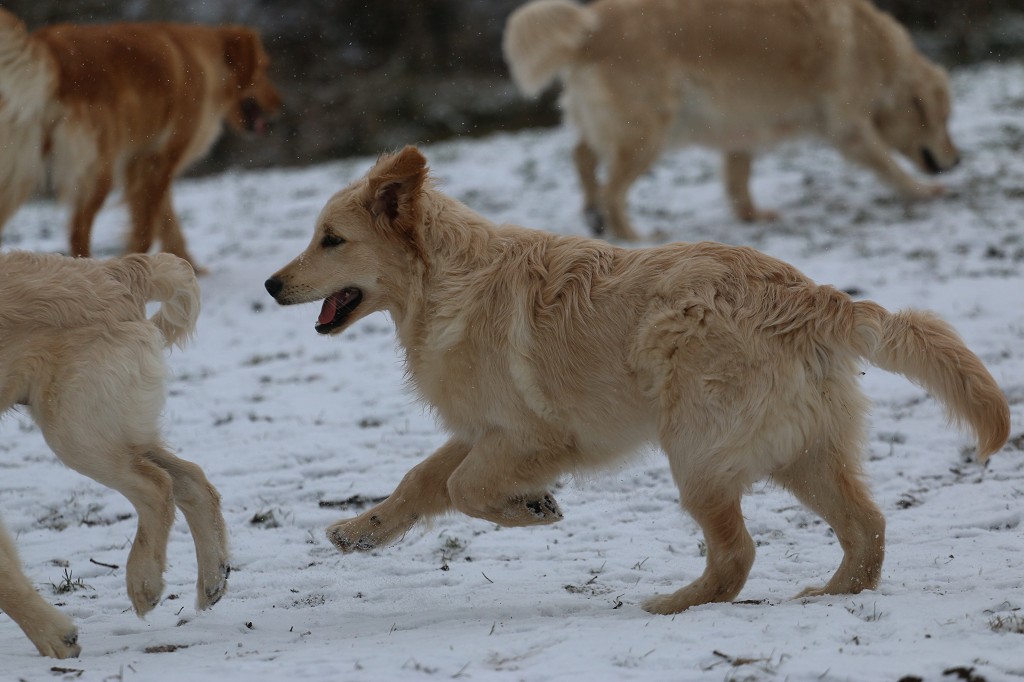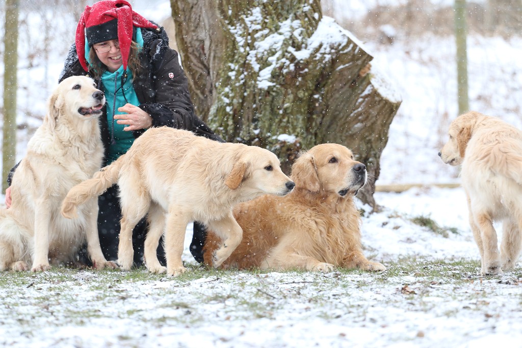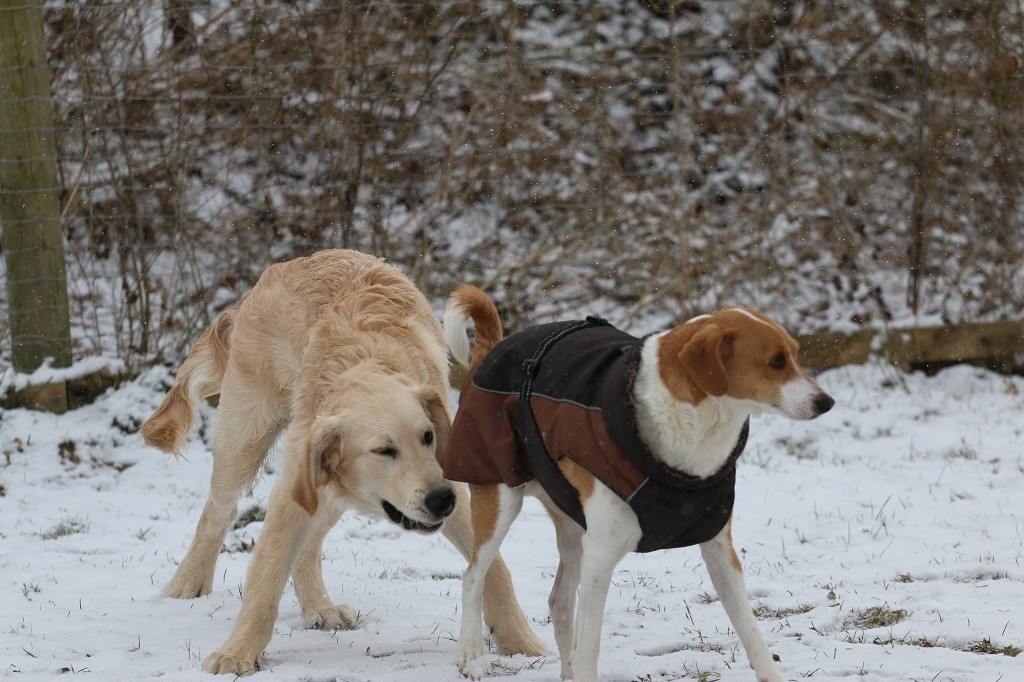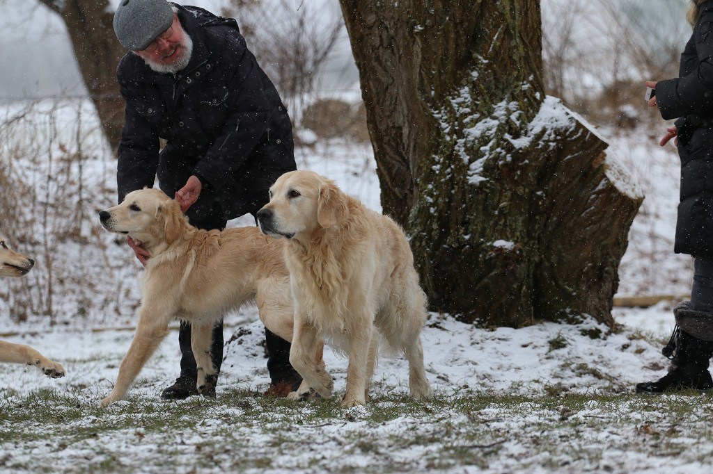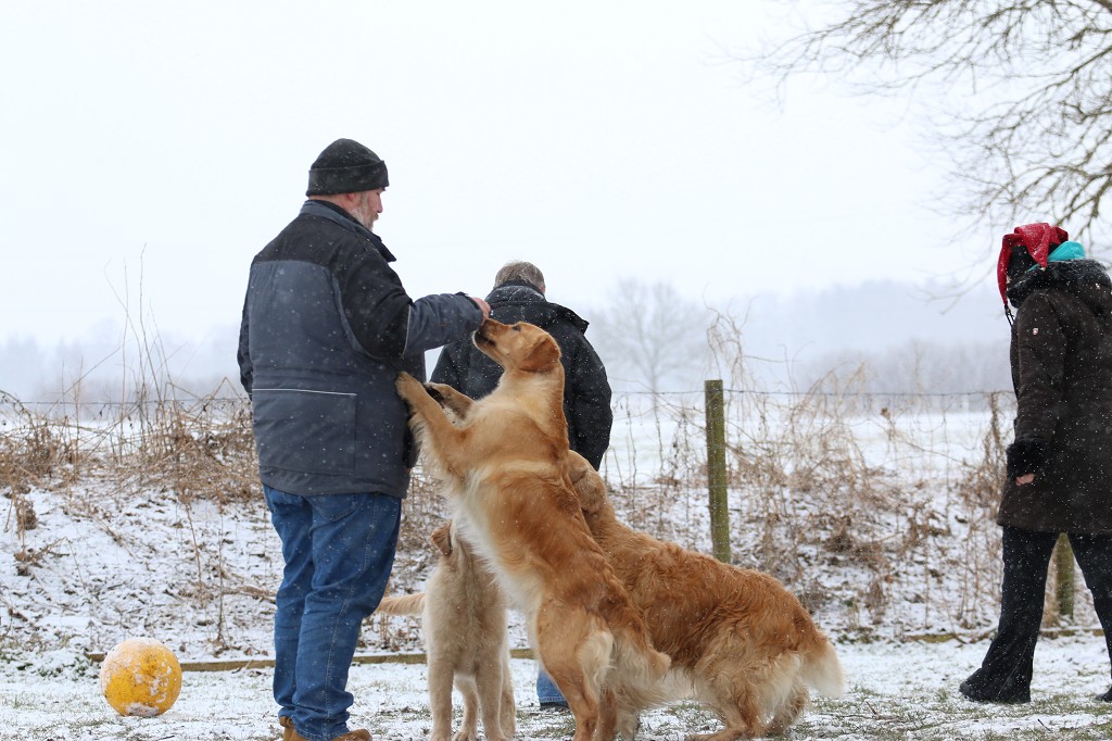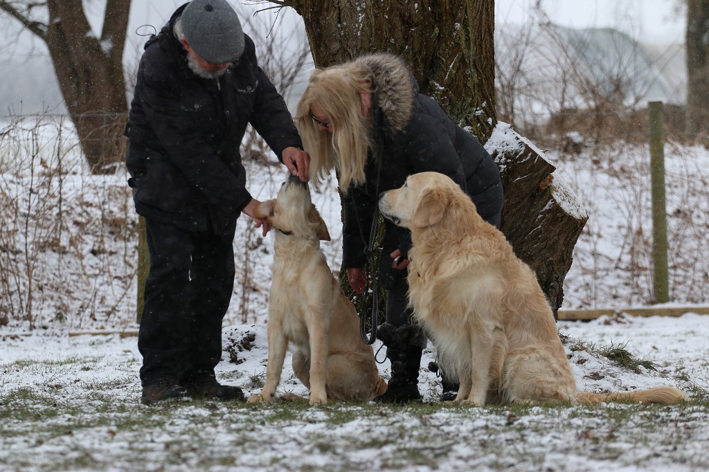 Arielle wollte ich die Kälte nicht mehr zumuten, denn das Gesundheitszustand der ätesten Hündin von Sweet Amber ist momentan besorgniserregend. Crazy ist läufig und in den Stehtagen – am Samstag hatten wir ganz genau gesehen, wie sie auf die Rüden reagiert und die Rüden auf sie. Deshalb musste auch sie zu Hause bleiben.