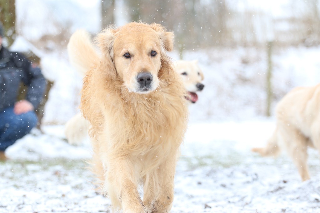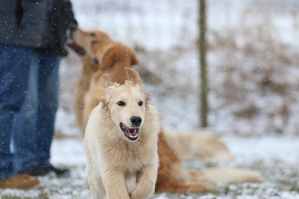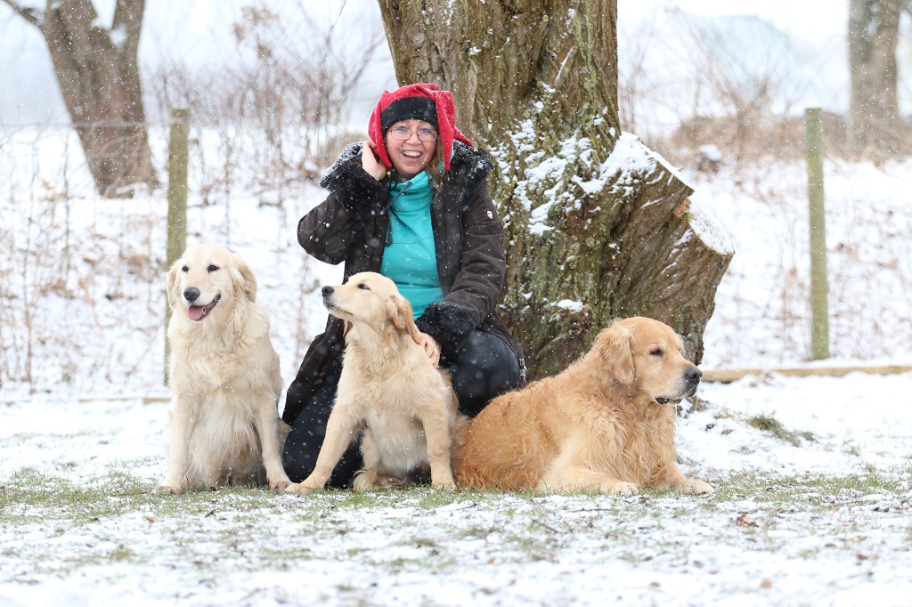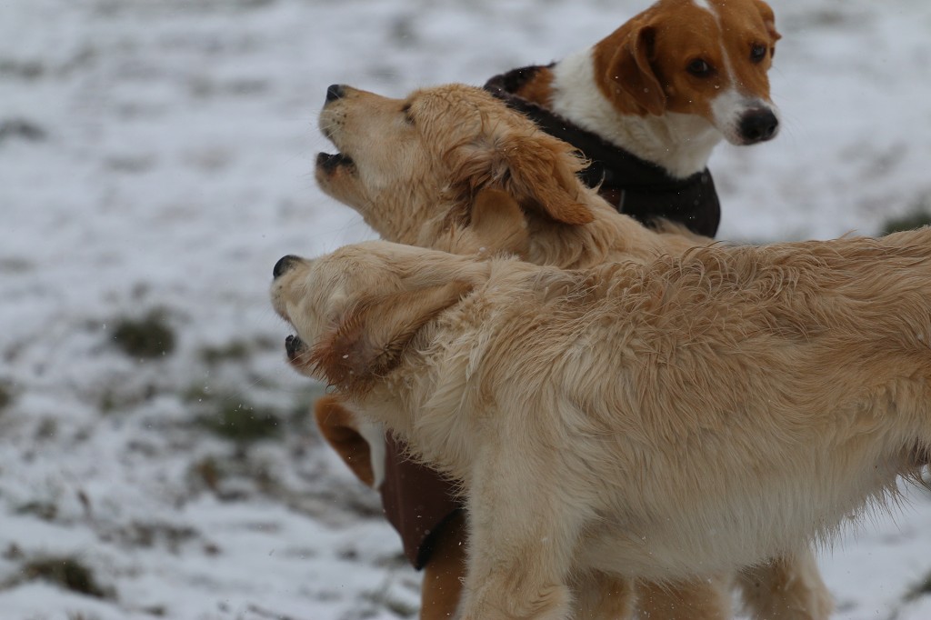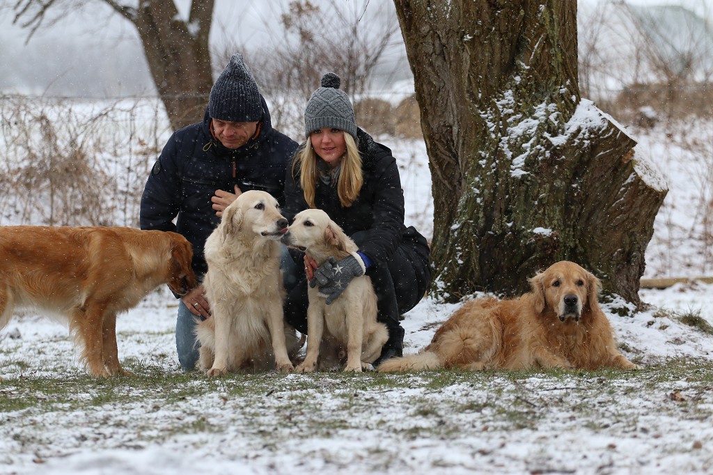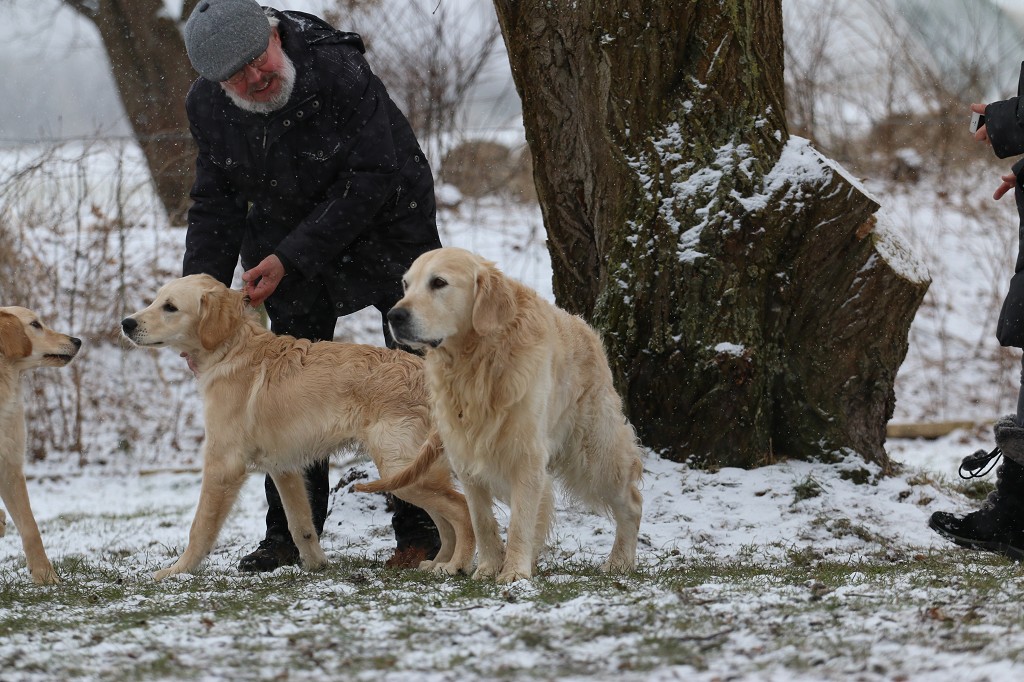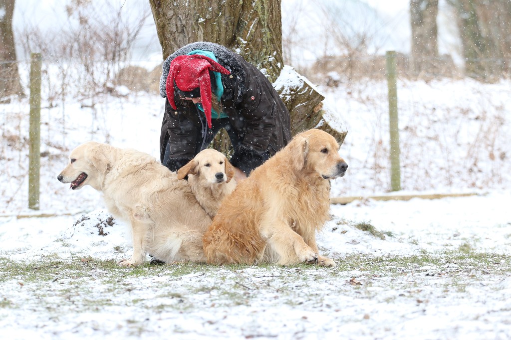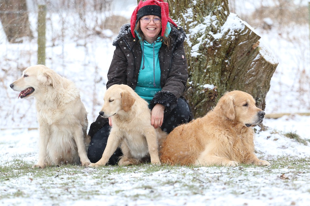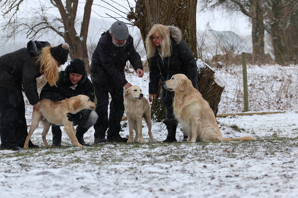 Arielle wollte ich die Kälte nicht mehr zumuten, denn das Gesundheitszustand der ätesten Hündin von Sweet Amber ist momentan besorgniserregend. Crazy ist läufig und in den Stehtagen – am Samstag hatten wir ganz genau gesehen, wie sie auf die Rüden reagiert und die Rüden auf sie. Deshalb musste auch sie zu Hause bleiben.