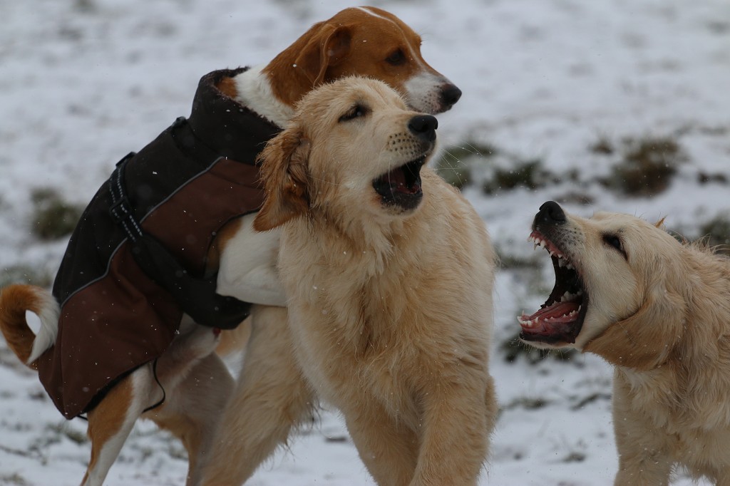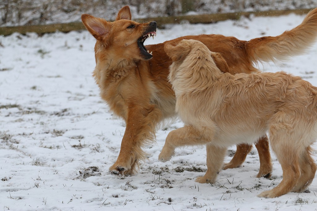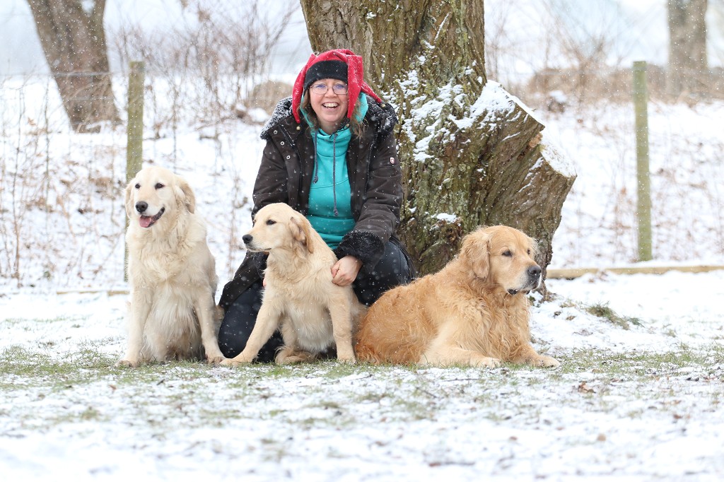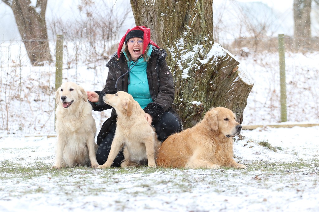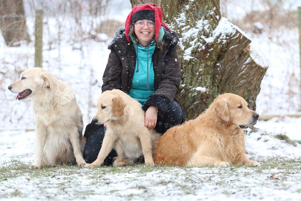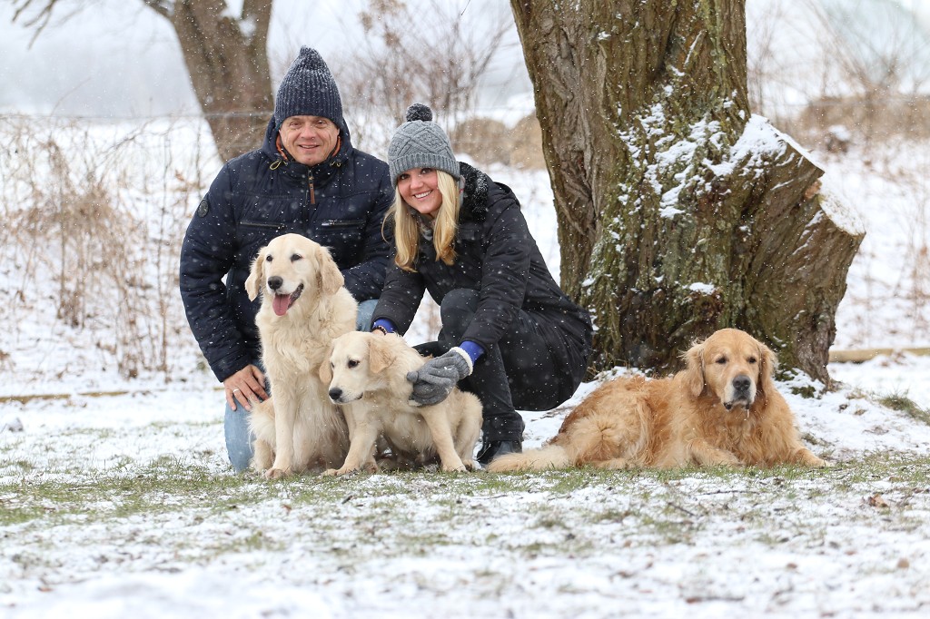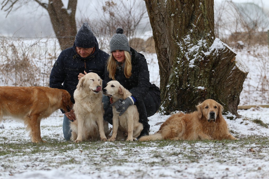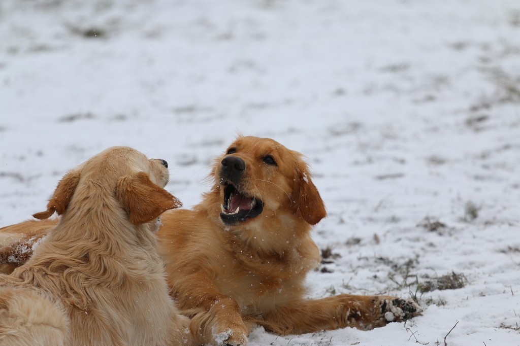 Arielle wollte ich die Kälte nicht mehr zumuten, denn das Gesundheitszustand der ätesten Hündin von Sweet Amber ist momentan besorgniserregend. Crazy ist läufig und in den Stehtagen – am Samstag hatten wir ganz genau gesehen, wie sie auf die Rüden reagiert und die Rüden auf sie. Deshalb musste auch sie zu Hause bleiben.