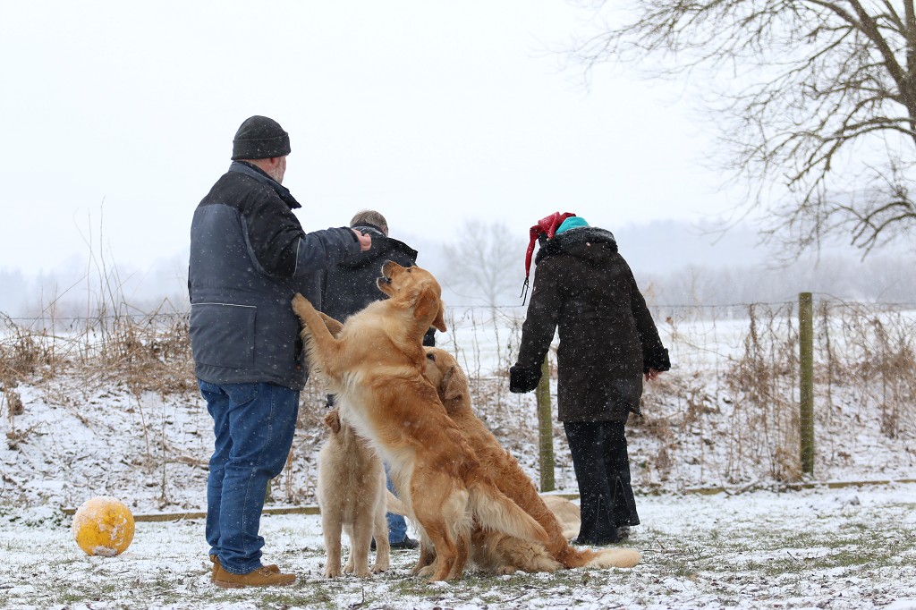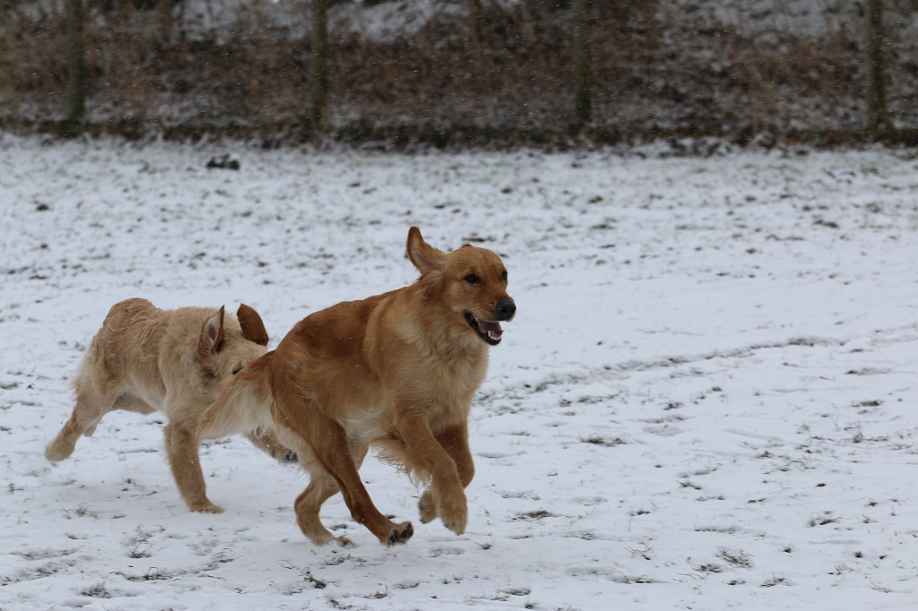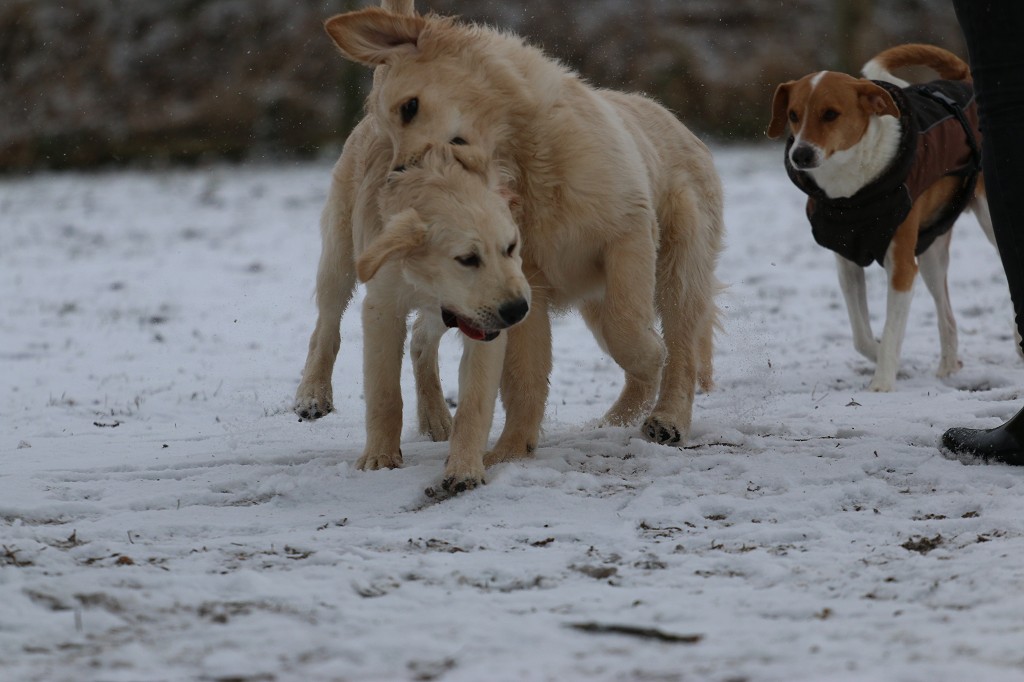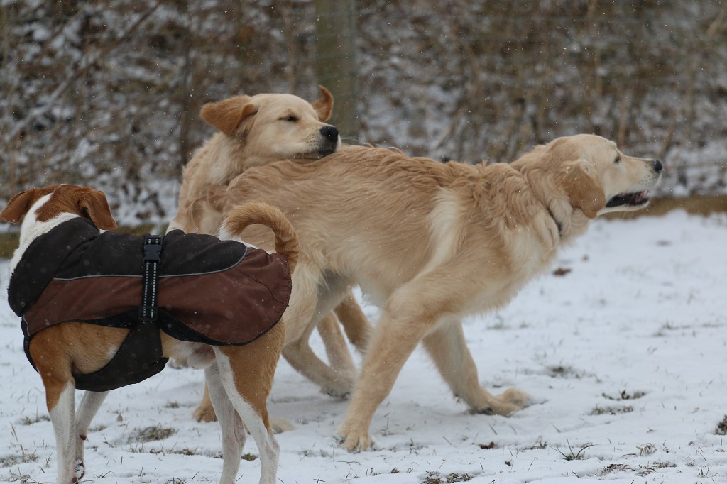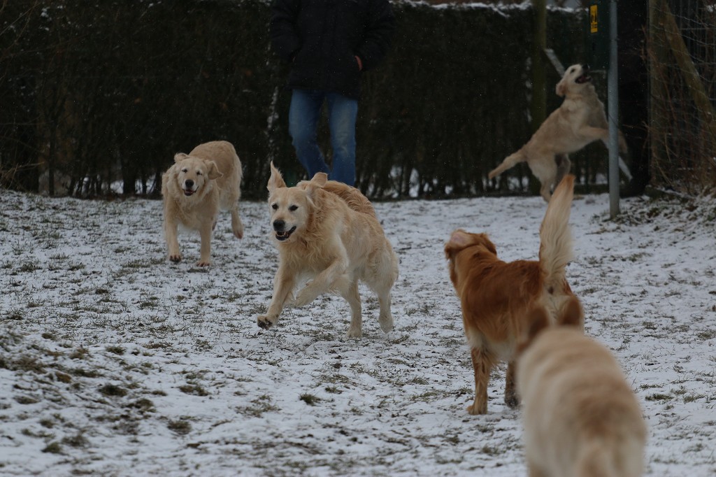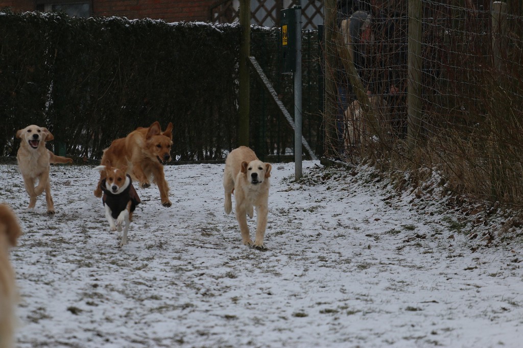 Es war echt kalt auf dem Platz. Unsere Hunde störte das gar nicht. Es war wie immer toll ihnen beim Spielen und Tobben zuzuschauen. Lange haben wir nicht ausgehalten-nur etwas über ein Stündchen.
