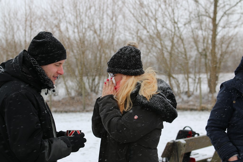 Es war kalt auf dem Platz und es hat morgens noch geschneit. Deshalb schlug Angelika vor heißen Tee und Glühwein mitzunehmen.