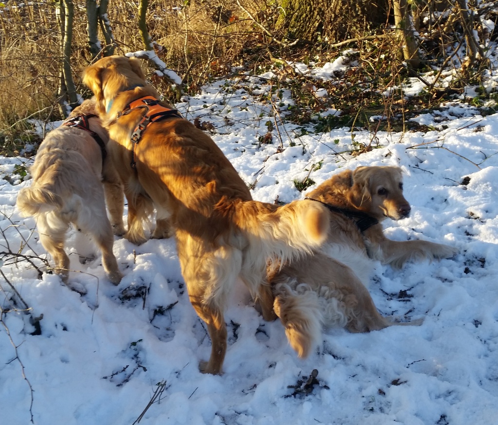 Meine Hunde geniessen die weiße Pracht in vollen Zügen. Die Hundesitter und ich frieren uns den A…. ab auf den Spaziergängen aber die Hunde sind überglücklich. Hier ein paar Impressionen von unseren Runden…