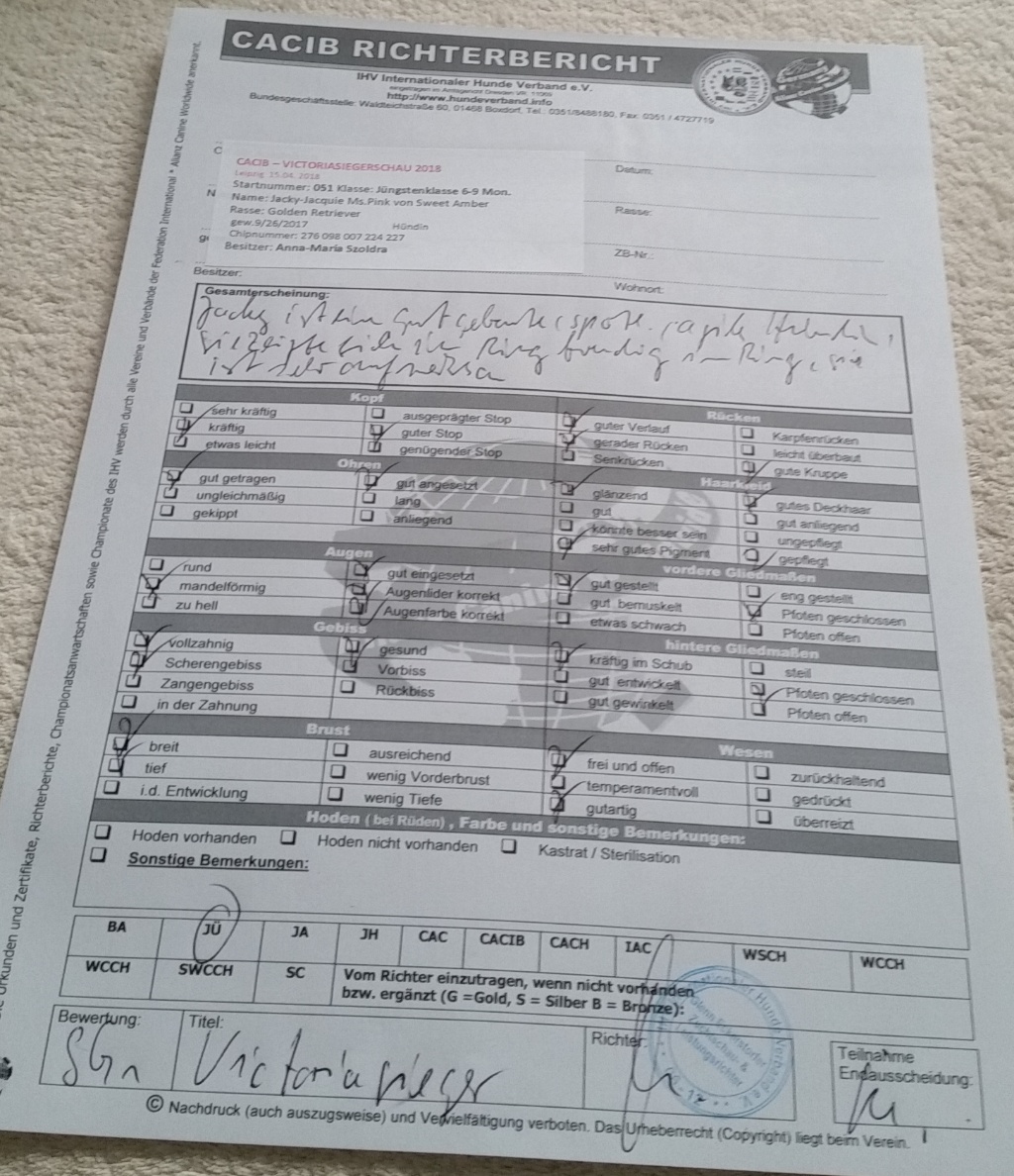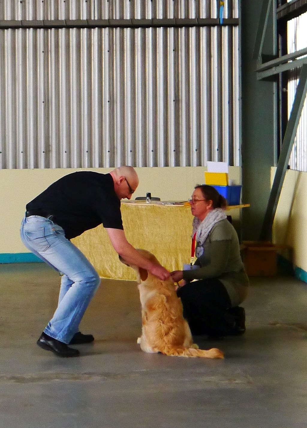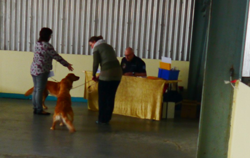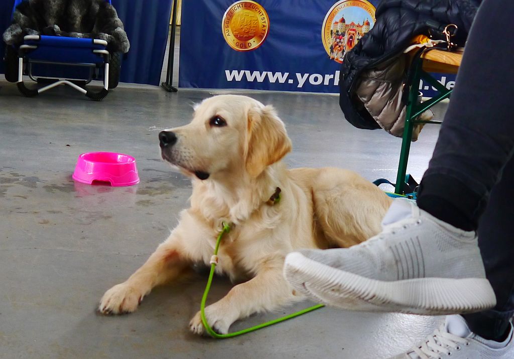 Was mich sehr gefreut hatte, waren wieder Höchstnoten für alle unsere Hunde. Beide Mädels und Jo liefen toll. In der Endausscheidung haben wir dagegen nichts gewonnen- da sind alle Goldies leer ausgegangen -ist wohl nicht die beliebteste Rasse bei den Richtern – zu wenig ausgefallen um punkten zu können. Nur im Retriever- Wettbewerb konnte eine andere wirklich wunderschöne Goldie-Hündin den dritten Platz ergattern.