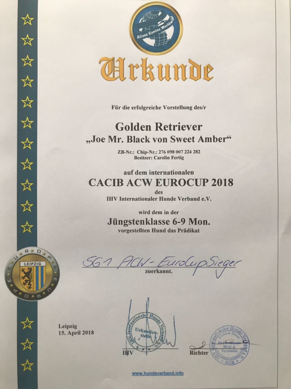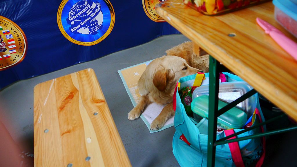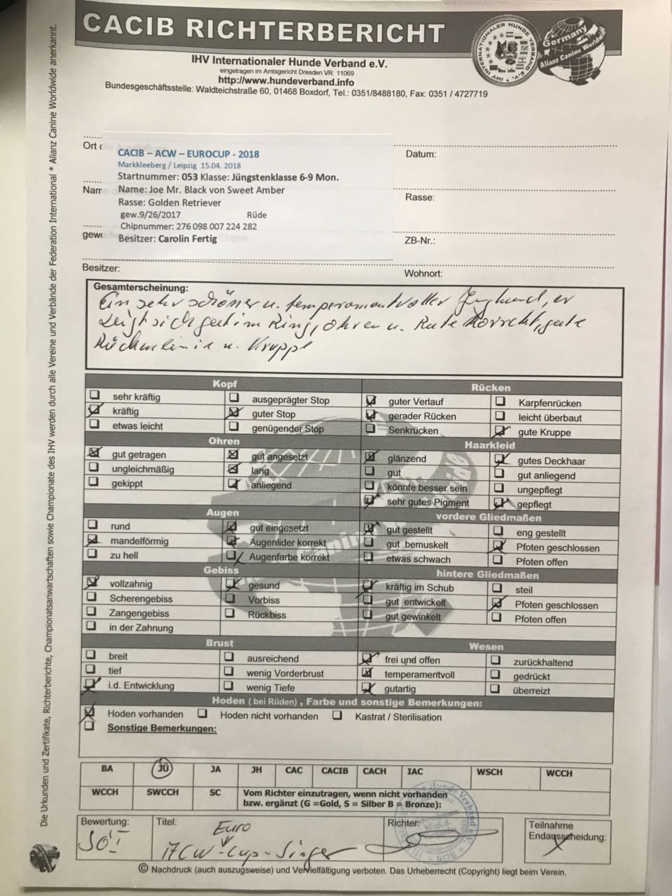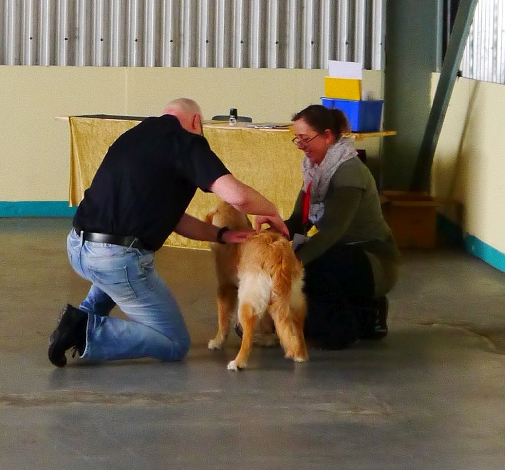 Was mich sehr gefreut hatte, waren wieder Höchstnoten für alle unsere Hunde. Beide Mädels und Jo liefen toll. In der Endausscheidung haben wir dagegen nichts gewonnen- da sind alle Goldies leer ausgegangen -ist wohl nicht die beliebteste Rasse bei den Richtern – zu wenig ausgefallen um punkten zu können. Nur im Retriever- Wettbewerb konnte eine andere wirklich wunderschöne Goldie-Hündin den dritten Platz ergattern.