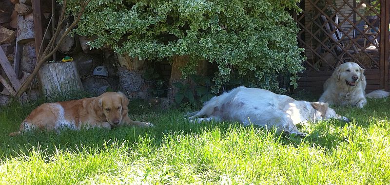 Namensliste ist auch komplett geschrieben- aber da ich natürlich abergläubisch bin, wird nichts vorher verraten :0). Lars macht heute die letzten Besorgungen ( Traubenzucker, Feuchttücher, Zahnseide) und… es kann losgehen! Unserer Vereintierarzt, Dr. Kozian, ist auch schon informiert, die Zuchtwärtin genau so, also alles ist bereit für die Ankunft von den neuen Welpen. Ich bin sehr gespannt wann es los geht und wie es wird, wie viele es werden und wie sie aussehen- sind mehr helle, oder doch goldene dabei? Oder gar ein Weißer? Mit dunkelgolden Welpen rechne ich nicht- es wäre echt sehr merkwürdig in der hellen Linie. Ich bin natürlich auch gespannt wie viele Jungs und wie viele Mädchen es geben wird- werden wir den Traum vom B- 5 und 5 wiederholen können?