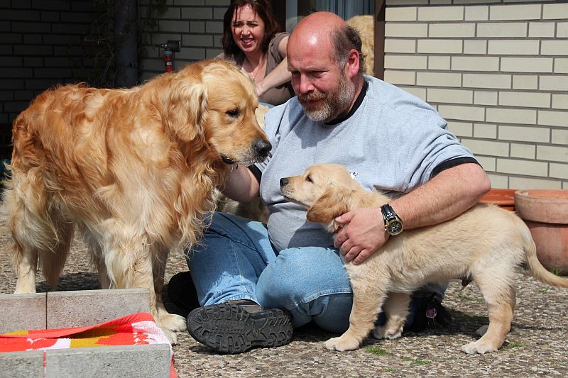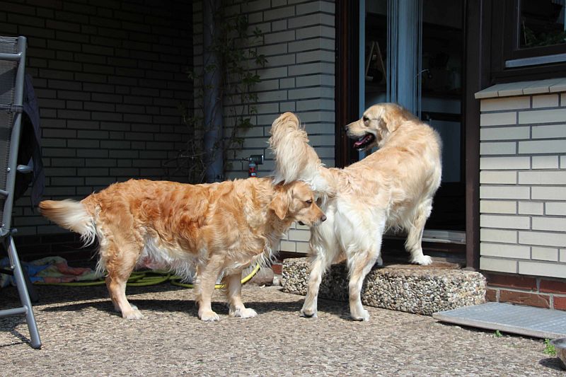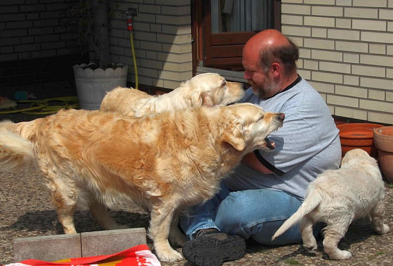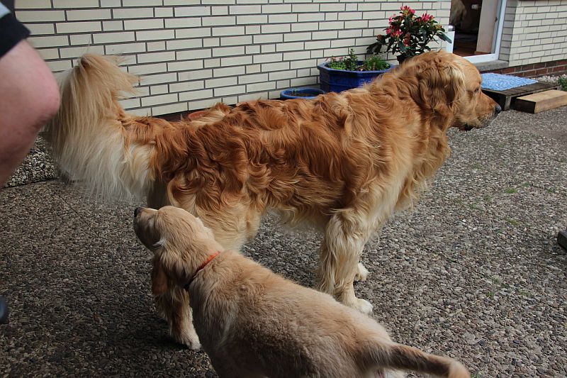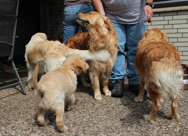 Die zwei Jungs bei den Mädels im Revier und dann auch noch Welpen dabei,