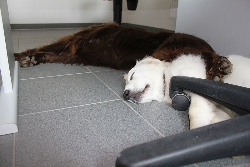 Und dann liegt da manchmal sogar noch der andere Hund auf mir drauf