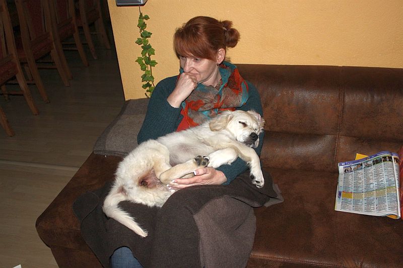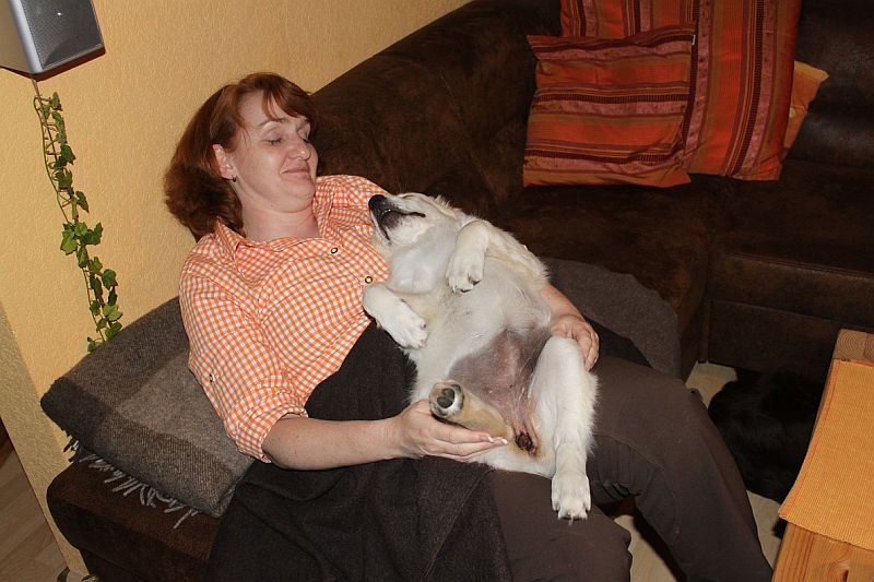 und wenn ich gute Laune habe) Sitz, Platz, Links, Rechts… bin halt ein Streber…Aber da musste ich abends beim Fernsehen (mag ich übrigens sehr gern) auch mal Frauchen als Kuschelplatz benutzen